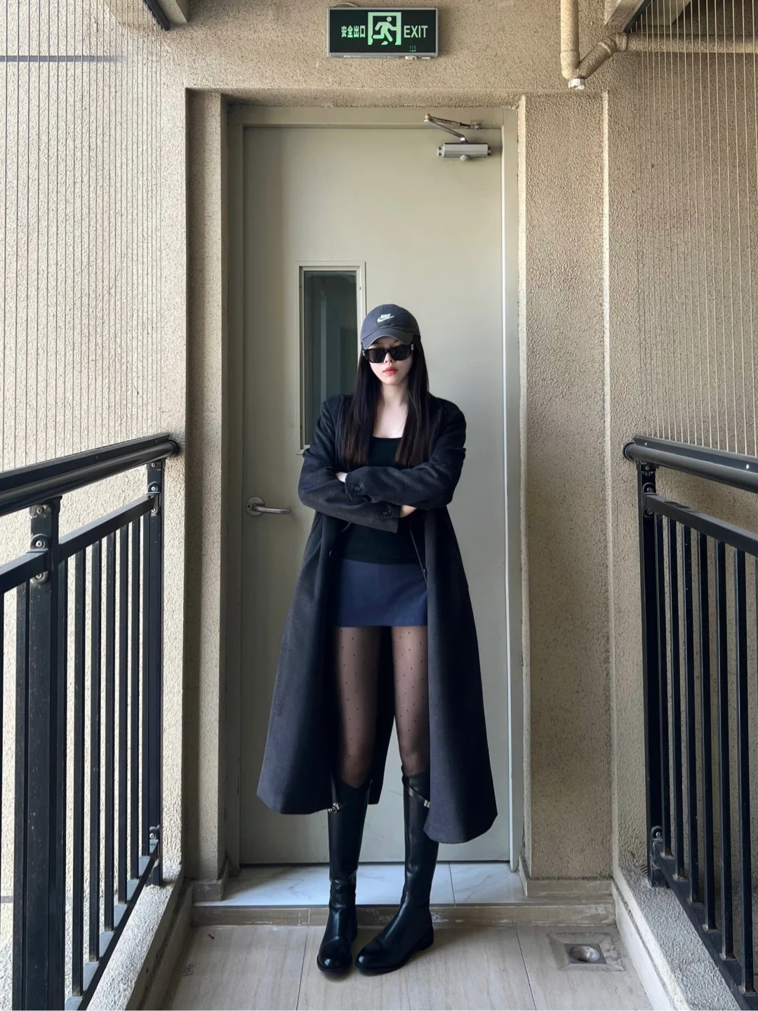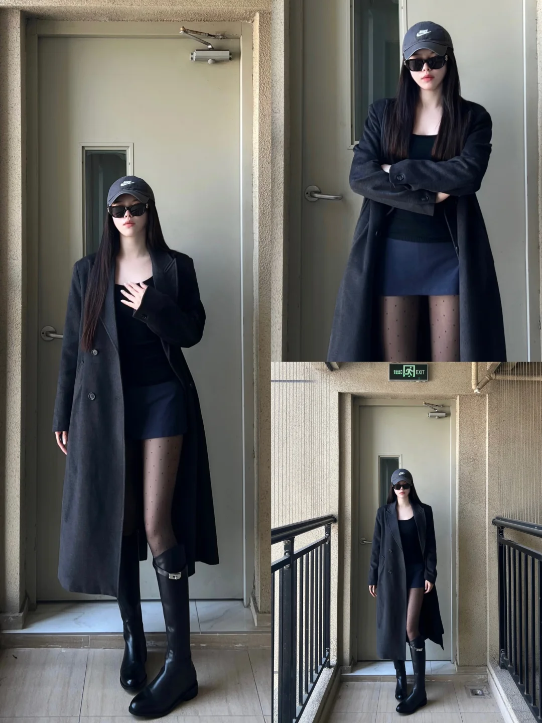 显身材穿搭 大衣 长靴 微胖 大长腿