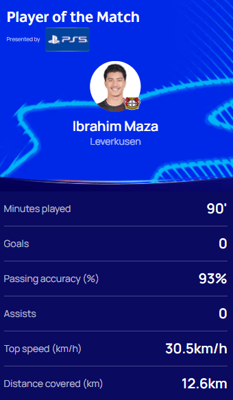 赛后,他也被欧足联技术小组评选为本场比赛的全场最佳球员。