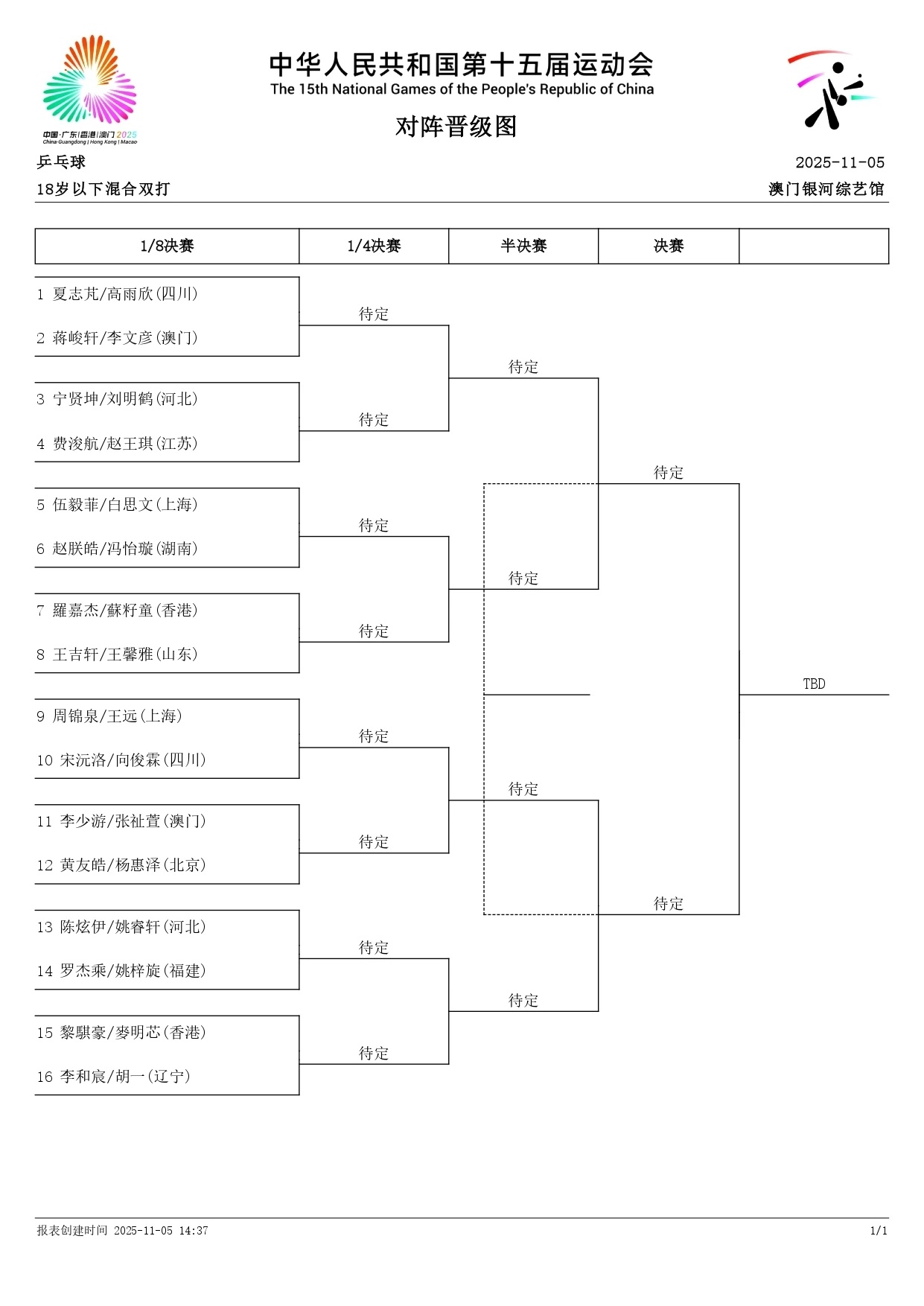 这全运会乒乓球抽签现场图不是有教练吗[允悲]这侧面不是陈玘吗,报表时间显示的11