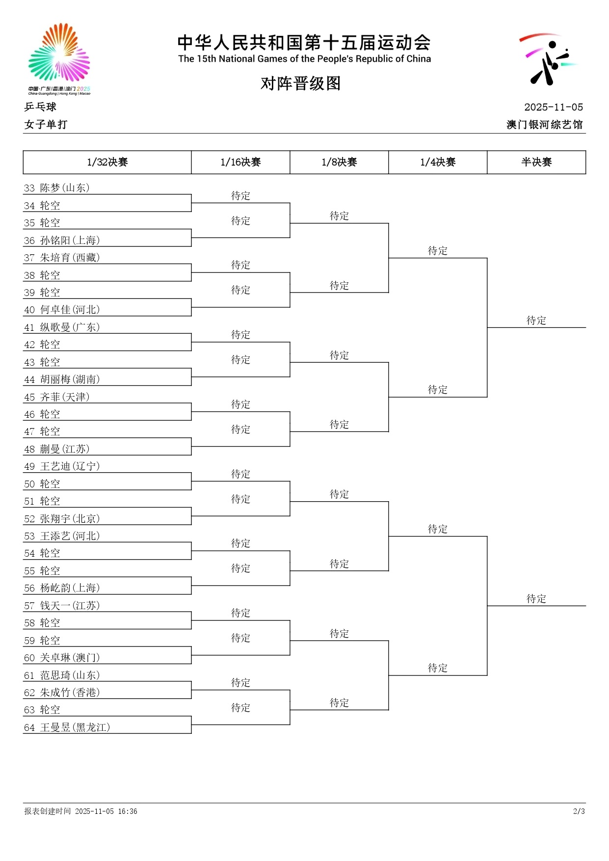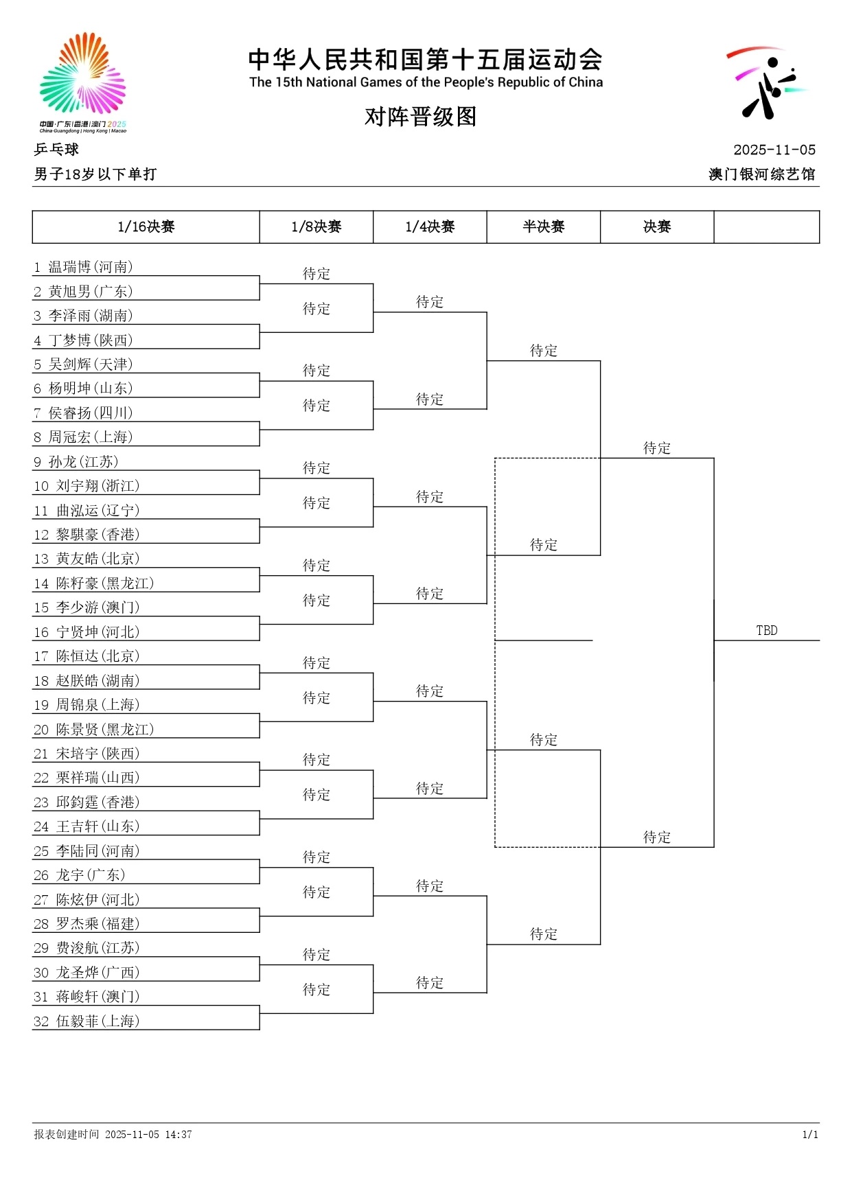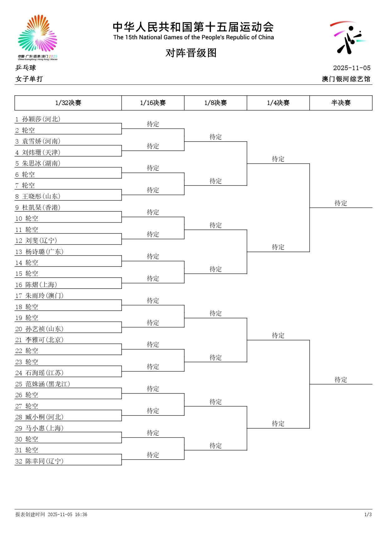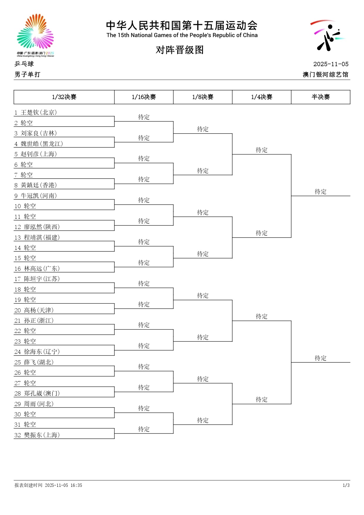 抽签结果出来了2025全运会乒乓球成年组男女单打抽签全部出炉!