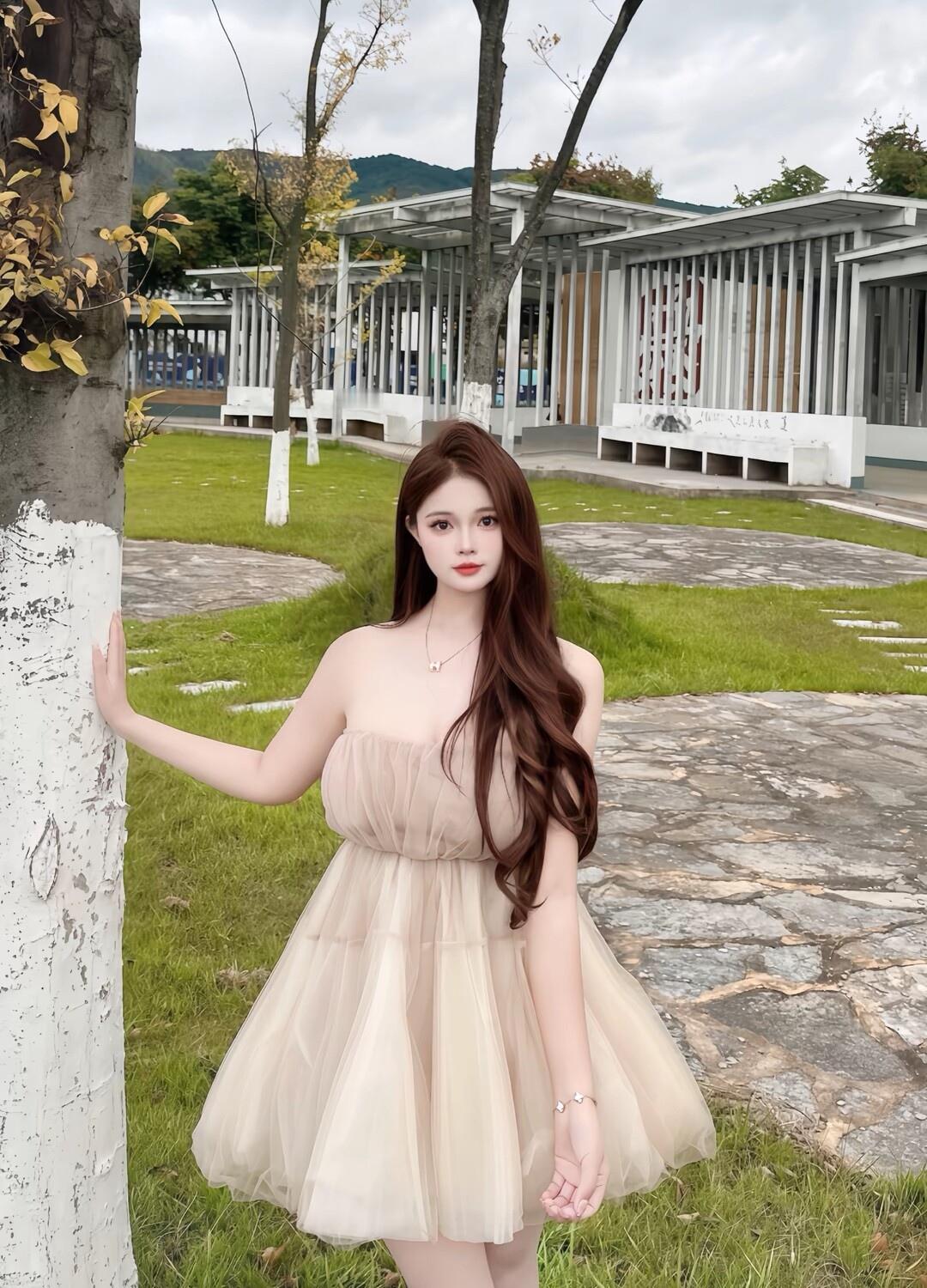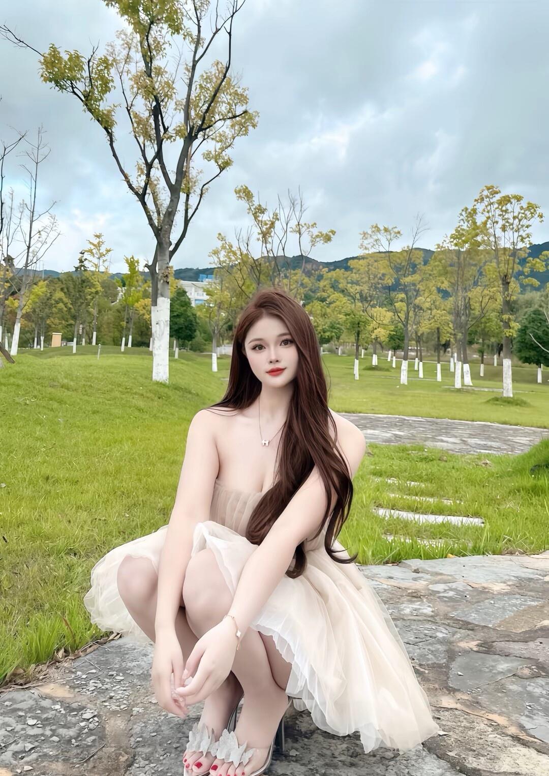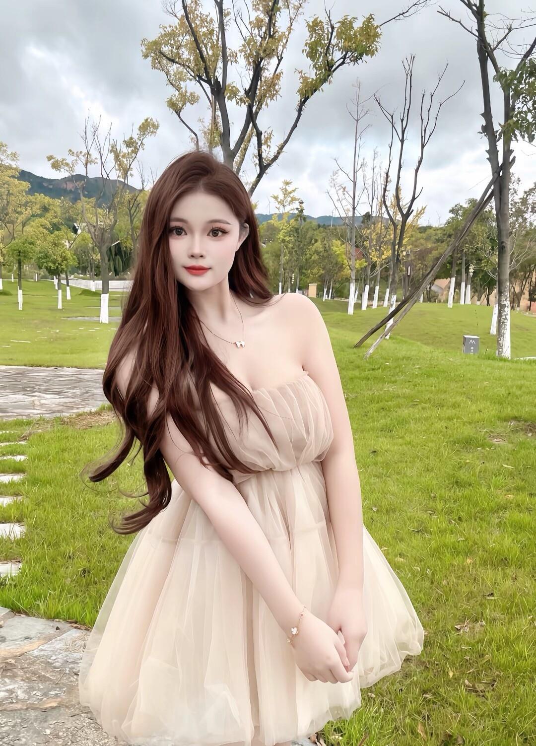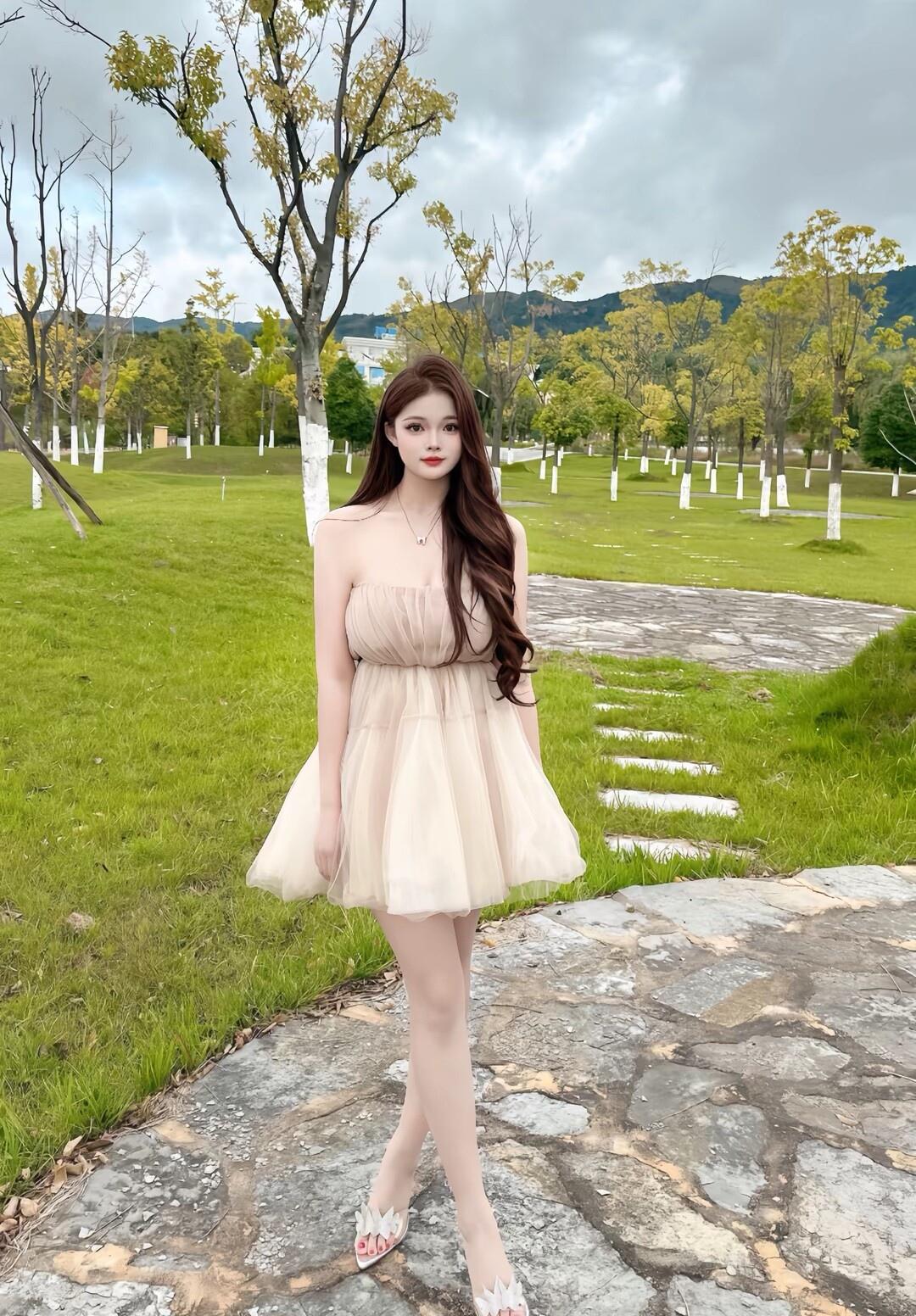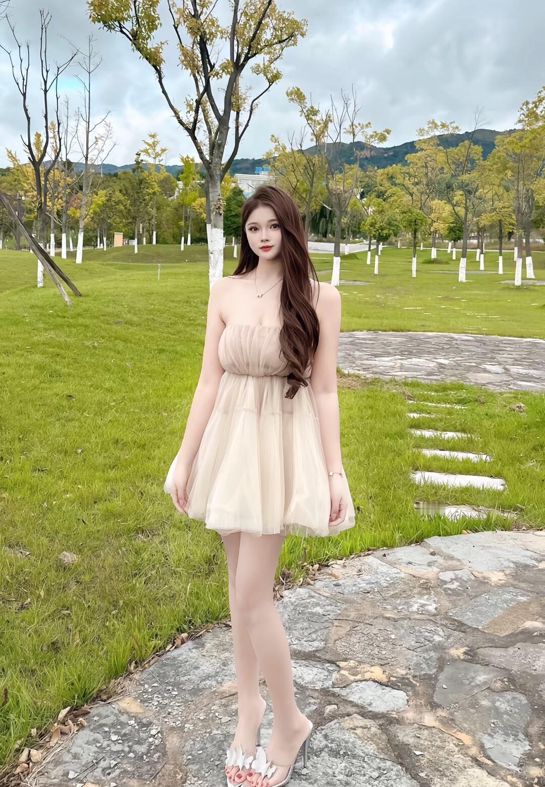 梦幻少女风,浅粉色连衣裙,清新自然,公园里的浪漫时光。