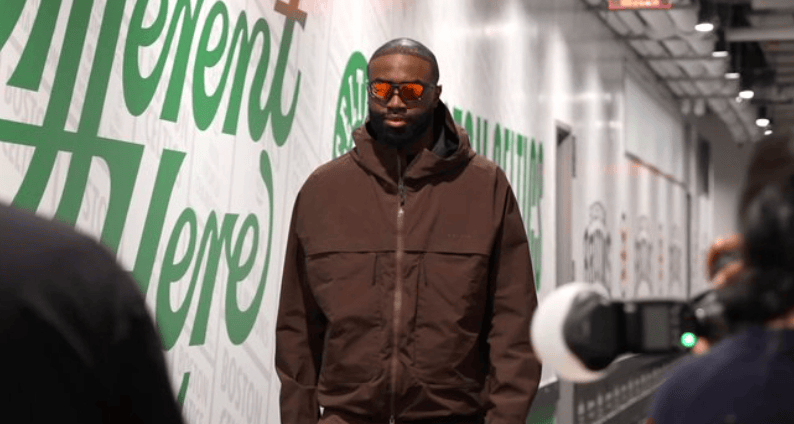 上一场与爵士比赛第四节最后时刻,杰伦-布朗被爵士球员基扬特-乔治绊倒,但裁判并未吹罚。