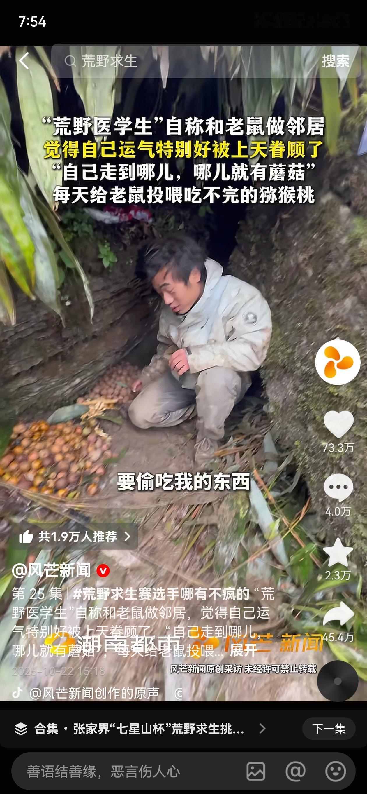 荒野求生这种节目真的值得提倡吗? 湖南张家界七星山举办的国际荒野求生挑战赛,给你一把柴刀,放野山林,比拼谁生存的时间长,为了20万的奖金,简直在扭曲人性的贪婪。 资本为了收视率,为了博眼球,把善良淳朴的人,放在山野里面,去考验人们的耐力极限,看到那些骨瘦如柴,连乞丐都不如的参赛选手,我不禁要问,这样值得吗? 毋庸置疑,参赛选手的身心健康受到了摧残,这种节目怎么就堂而皇之的成了连续剧,可以大摇大摆的制作。 荒野求生是从西方传过来的节目,他针对的是极个别的受过专业训练的求生专家。而我们的节目面对的是为了钱不顾身体健康的普通老百姓,这个初衷是有问题的。我个人极其不赞成这样的节目存在!