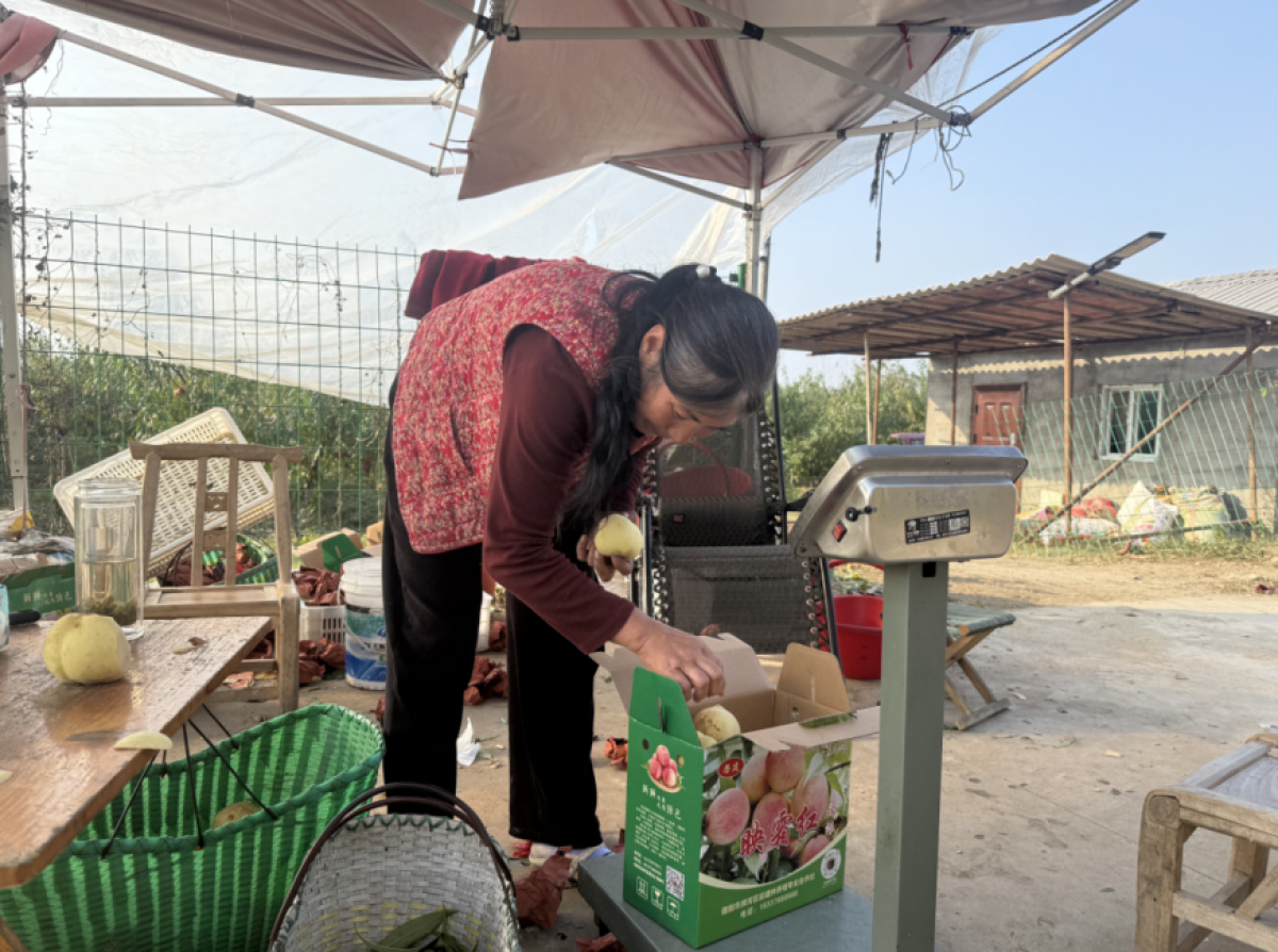 “我们不再满足于‘一季有桃’,而是着力打造‘四季有桃’的种植体系。”村党支部书记袁世宏介绍,村里精心规划种植时序,春有“五月仙”,夏有“水蜜桃”,秋有“黄桃”,冬有这款晚熟桃,150亩桃园实现了错峰结果、全年产出的良性循环。