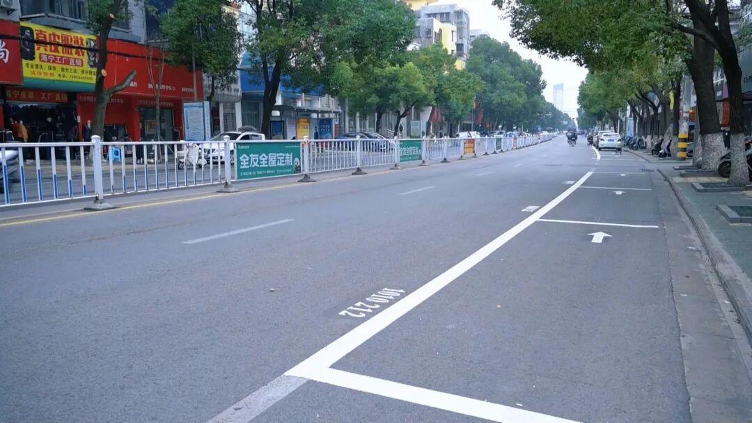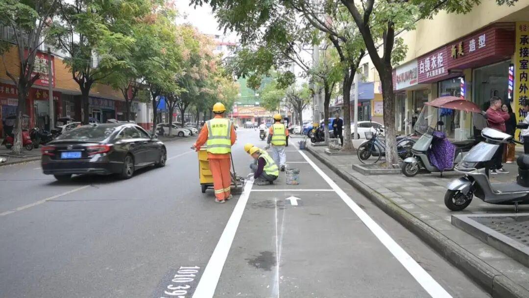 在城区荆江河路,施工人员正在进行车位线施划作业,测距、定位、喷漆等工序,清晰界定出标准停车区域。本次规划的停车位重点覆盖商业集中区、医院学校周边、公共交通枢纽以及老旧小区等公共停车资源紧张的区域。每个车位都将进行规范划线,并配备统一、醒目的标识标牌。