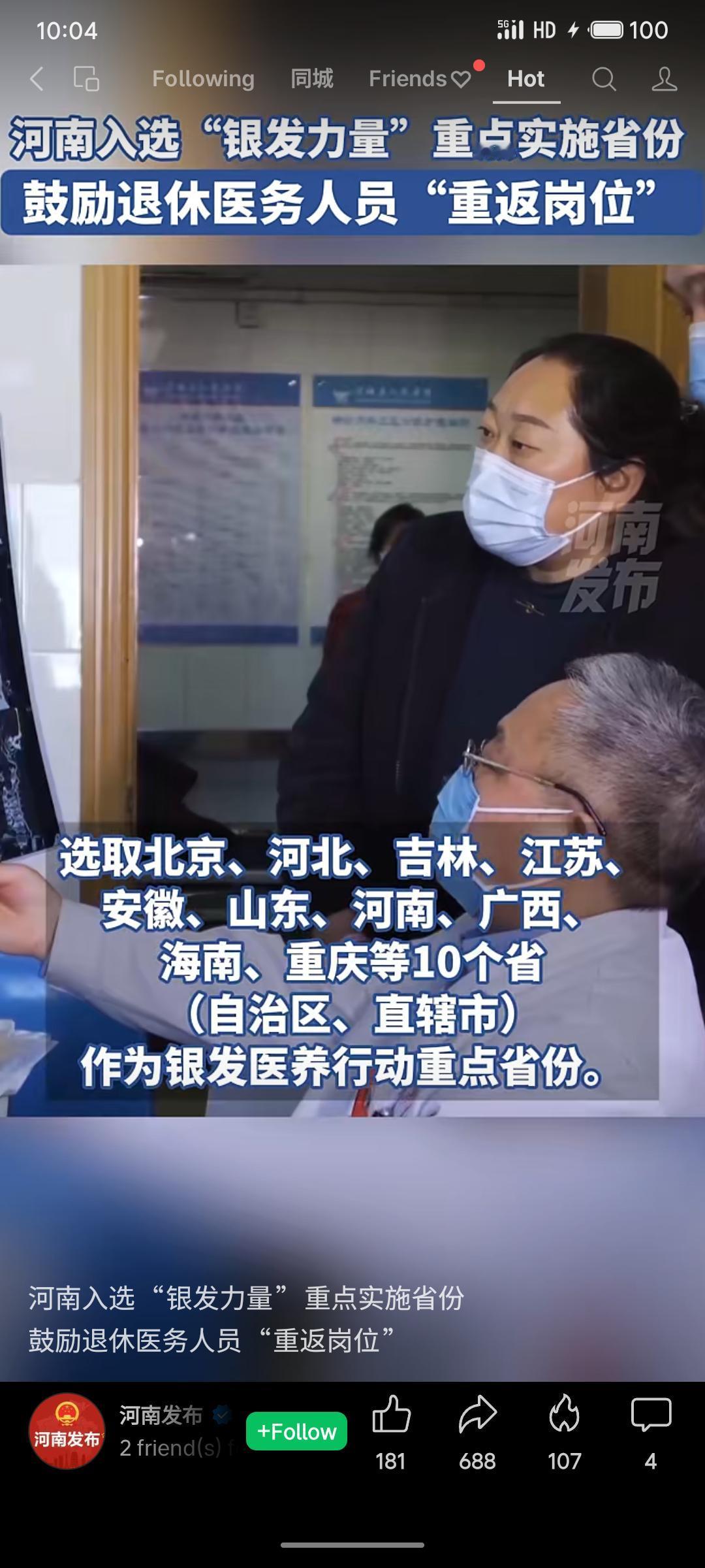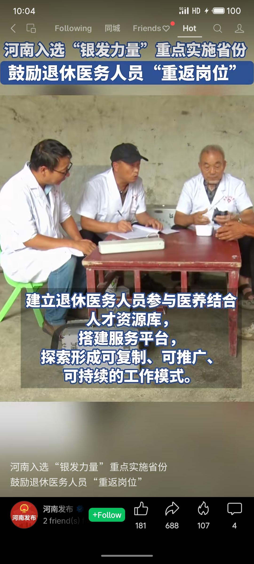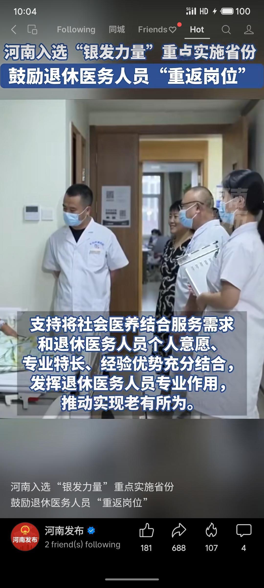 近日,国家卫健委等五部门启动“银发医养行动”,河南等10省份被列为重点实施地区。该行动旨在鼓励退休医务人员重返岗位,通过建立人才资源库与服务平台,发挥其专业特长,满足社会医养结合服务需求。