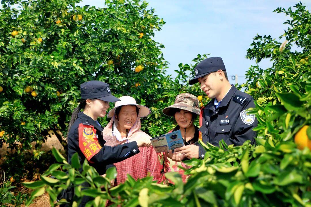 兴国县公安局整合民警、联户长、农技骨干三方力量,组建“橙园联宣队”,把安全知识、农业技术直接送到田间地头。联宣队以联防小组为单位开展活动,民警讲解防盗防骗知识,农技骨干指导种植技术,联户长收集果农诉求。此外,民警还梳理汇总涉农诈骗、盗窃等典型案例,制作成通俗易懂的预警提示,通过联防微信群精准推送,提升果农的识别和防范能力。