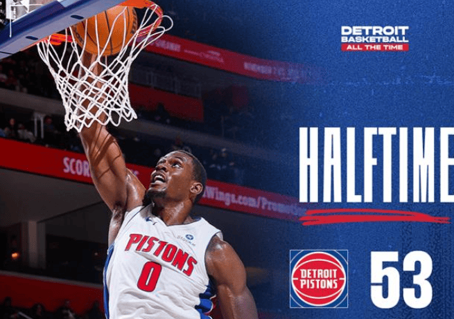 本场比赛,活塞球员杰伦-杜伦出战34分钟,投篮15中10砍下22分22篮板3助攻1盖帽。