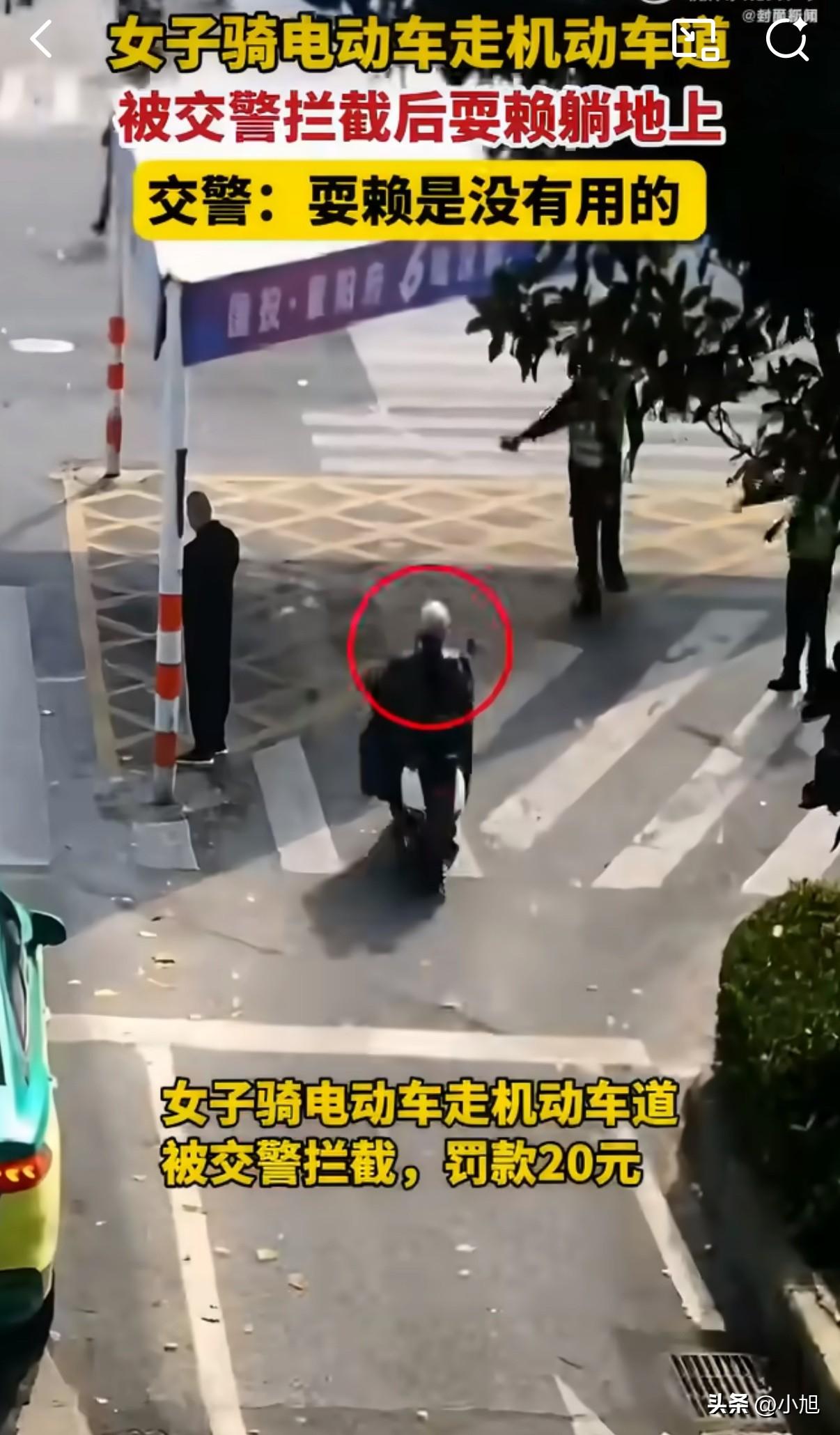 这大姐也太冲动了!骑电动车走了机动车道,被罚20块,直接往地上一躺,真是让人哭笑不得。 “不行,我就不干,你为啥要逮我?”她这么一问,把交警都逗乐了。 交警耐心解释:“这是机动车道,电动车不能走。” “我不干,你咋光逮我?”大姐还在地上不起来。 最后经过劝导,她总算认识到错误,接受了处罚。其实生活中谁没犯过错呢,知错能改就好。