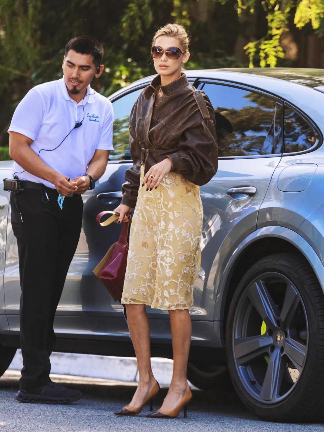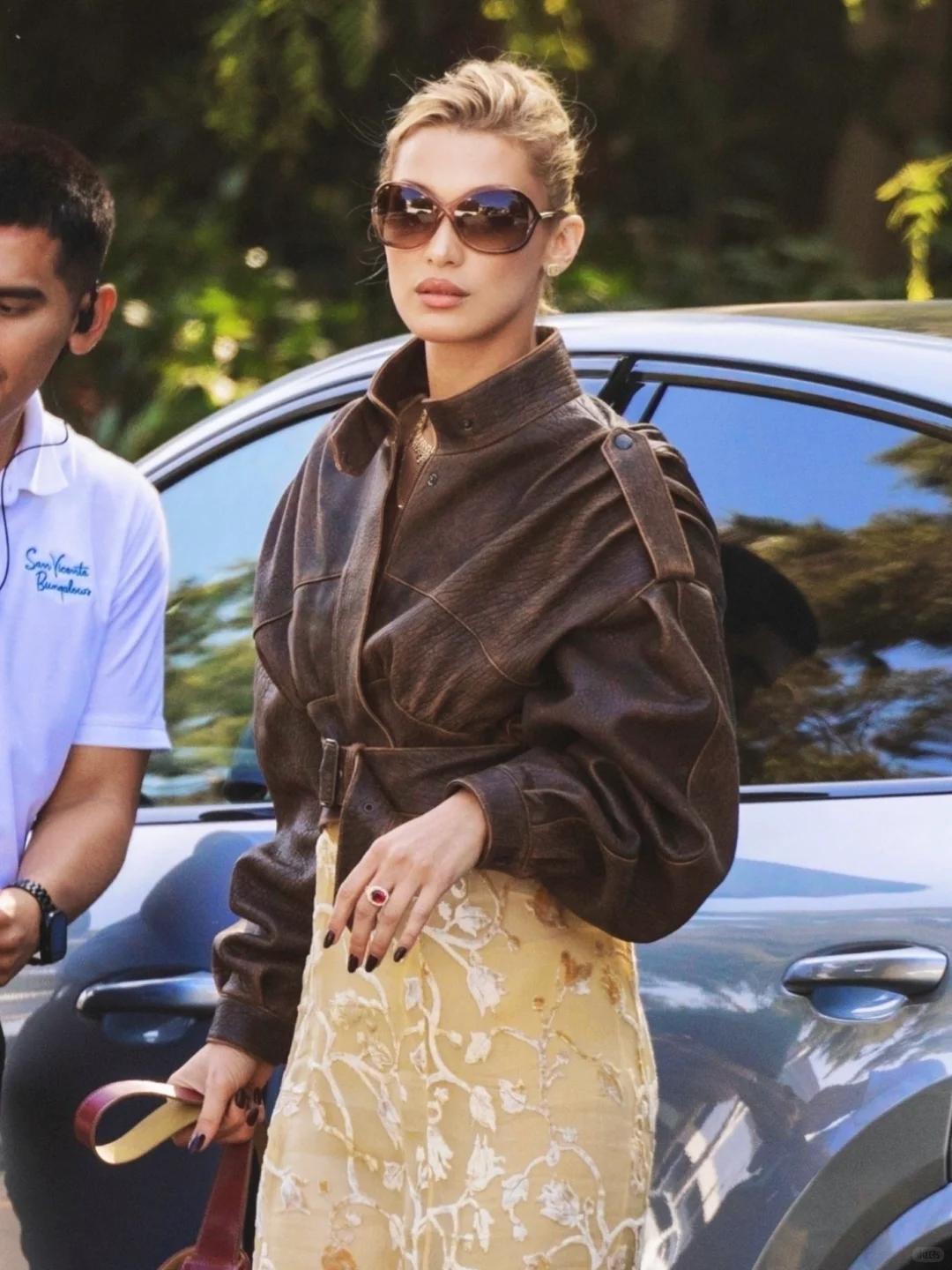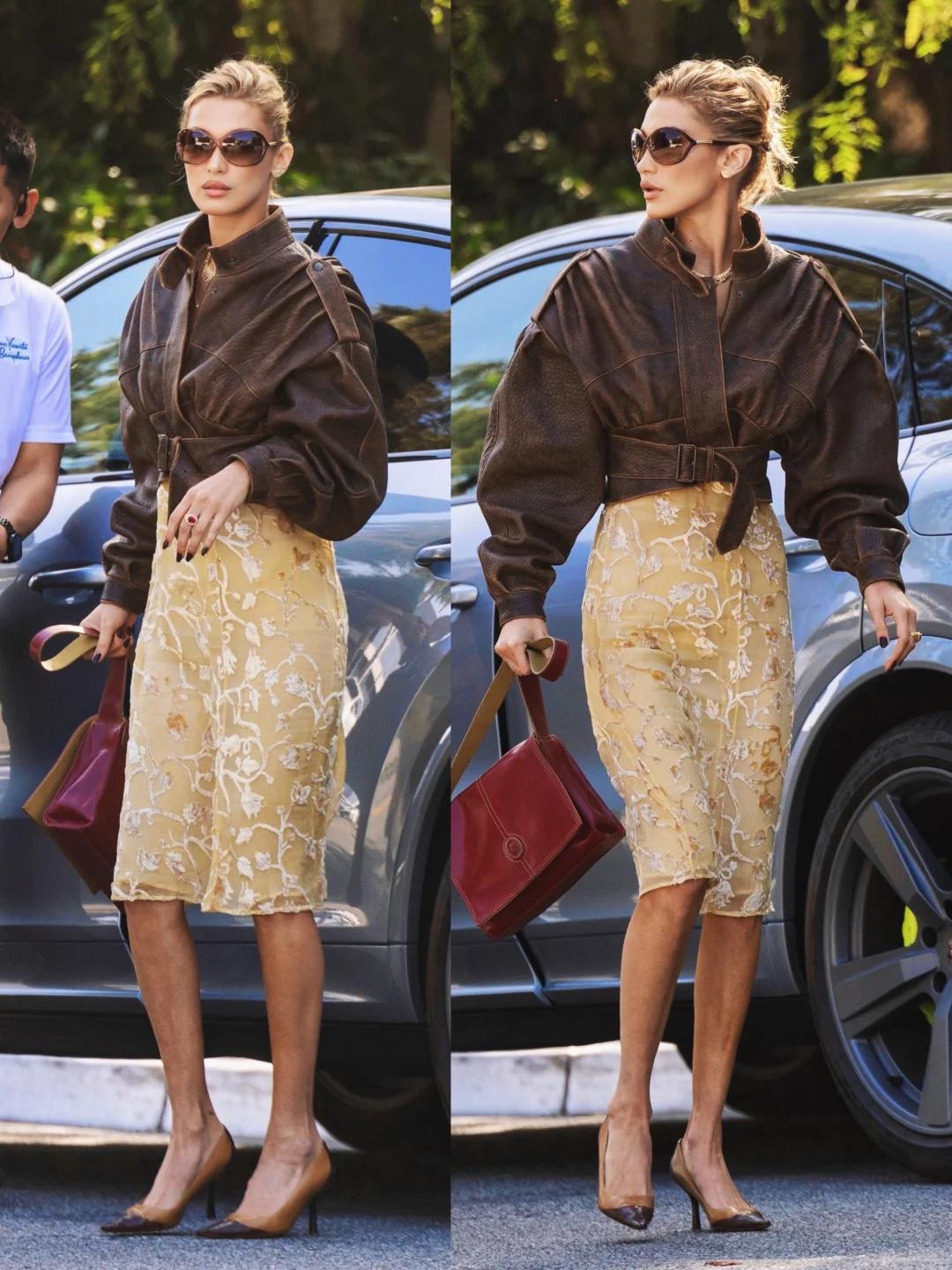超模Bella Hadid洛杉矶街拍,97年Prada黄裙太会选了✨ 又美出新高度👏 美式复古风直接焊在身上的女人! Chloé皮衣叠穿Vintage单品 内搭Prada 1997年春夏系列刺绣黄裙 再配上Chanel复古配饰+Tom Ford大框墨镜 上世纪好莱坞女明星的氛围感直接拉满🎬 慵懒又贵气的腔调,街拍每一帧都好有看头! 重点夸夸这条神级黄裙! 精致刺绣细节美到窒息,复古感直接戳中审美 而且是造型师在LA古着店Tab Vintage淘到的宝藏 店铺都亲自认领了 真·古着圈天选单品👑 果然时髦的尽头是Vintage~
