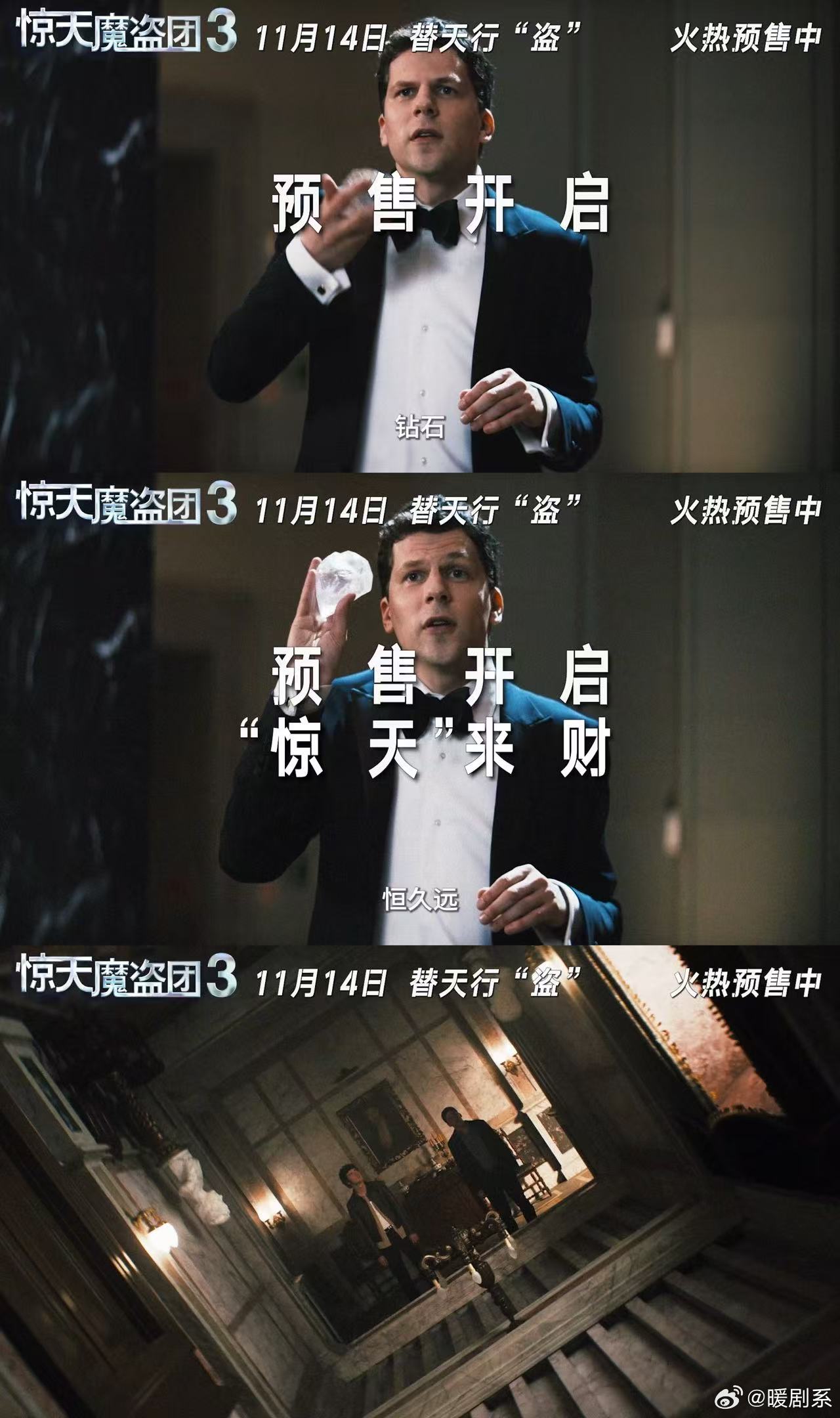 惊天魔盗团3预售开启 11月对我太好了,刚定档就开预售,已经和朋友约好提前进场占