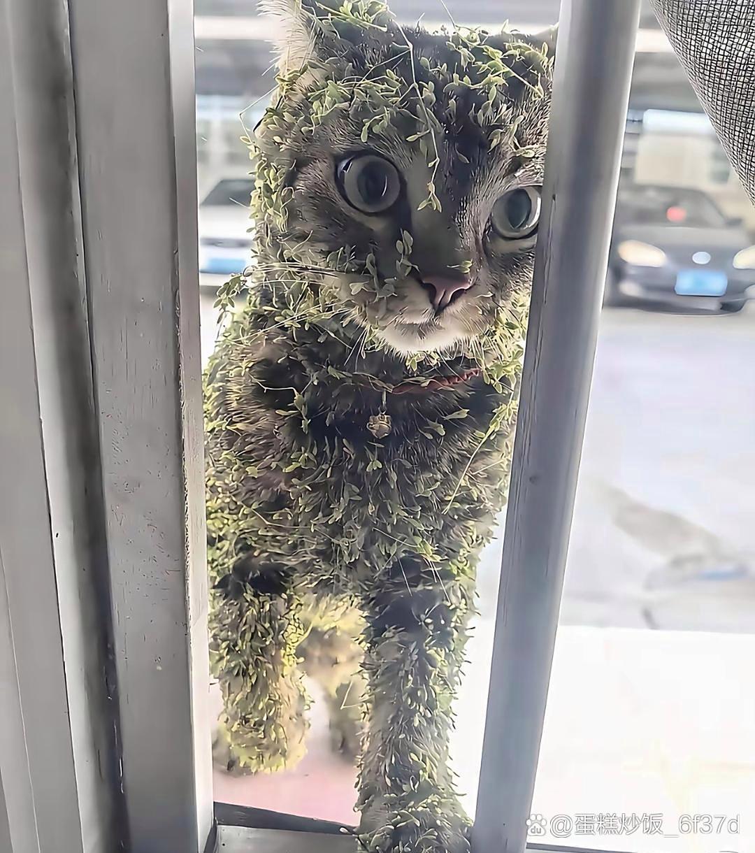 我家猫咪出去玩了一会,回来后差点没认出来,你们猜它跑哪里去了吗?[捂脸]