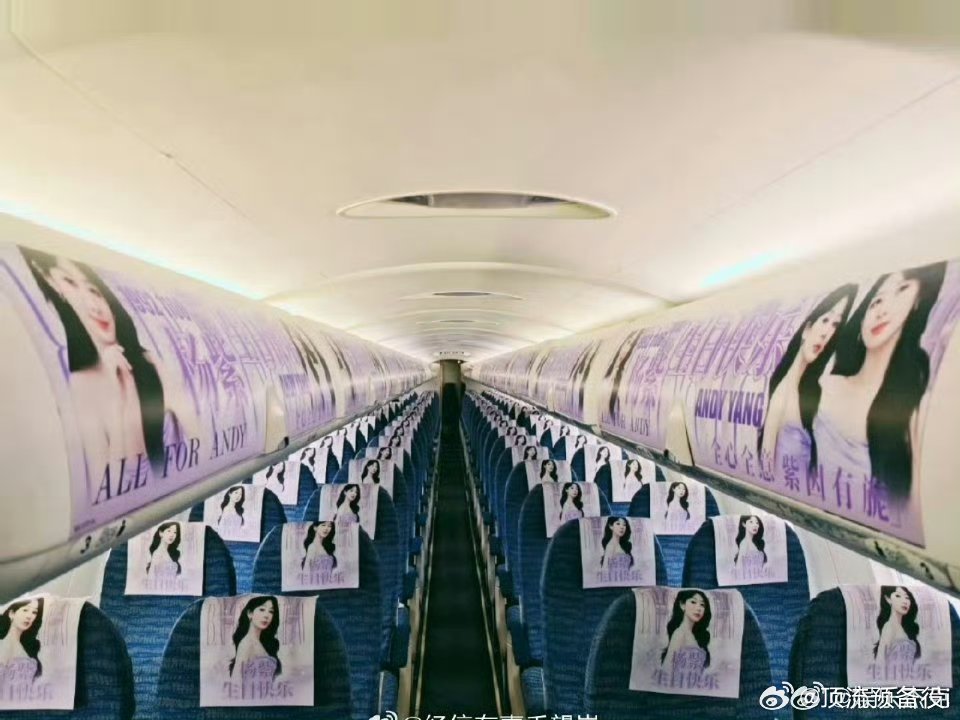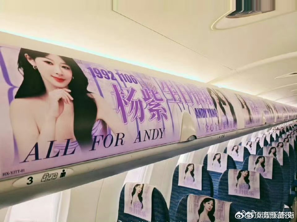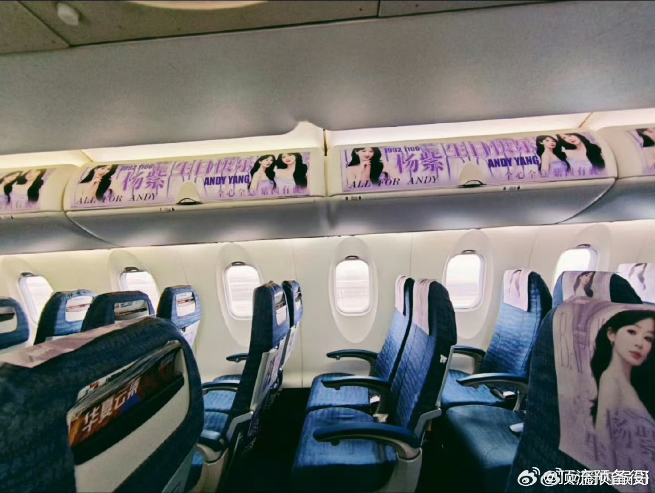 杨紫11月6日生日盛大的航空包机应援,满机舱的紫色很整齐漂亮诶[爱慕]