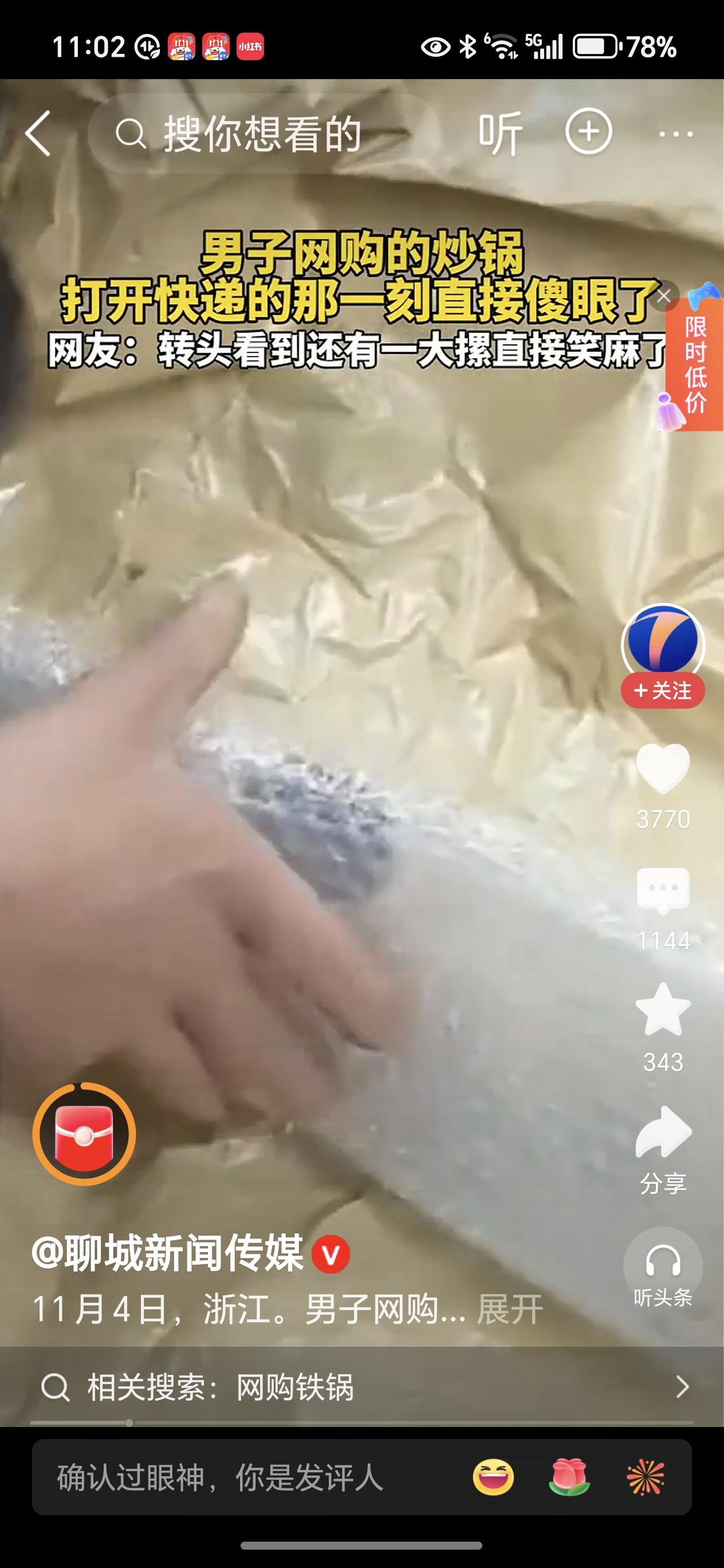 男子网购铁锅打开快递后傻眼了男子贪小便宜,8.8元网购铁锅,打开层层包装,看的人
