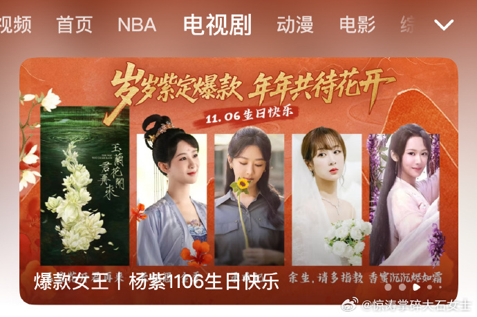 杨紫庆生专栏腾讯为杨紫特设生日专栏 腾讯视频特设生日专栏!杨紫多部爆款剧集齐聚,“岁岁紫定爆款” 见证成长,共待新篇~