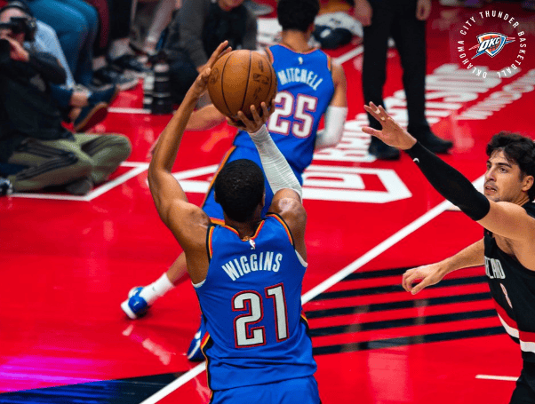 雷霆球员阿龙-威金斯出战18分钟,投篮12中7、三分7中5砍下19分2篮板1助攻。