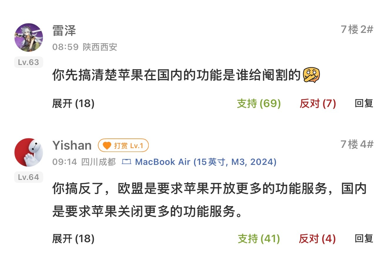 苹果在欧洲把iPhone和手表的WiFi同步功能给禁用了,楼下评论区的大哥们为欧盟打抱不平,这是真敢说啊[哆啦A梦害怕]