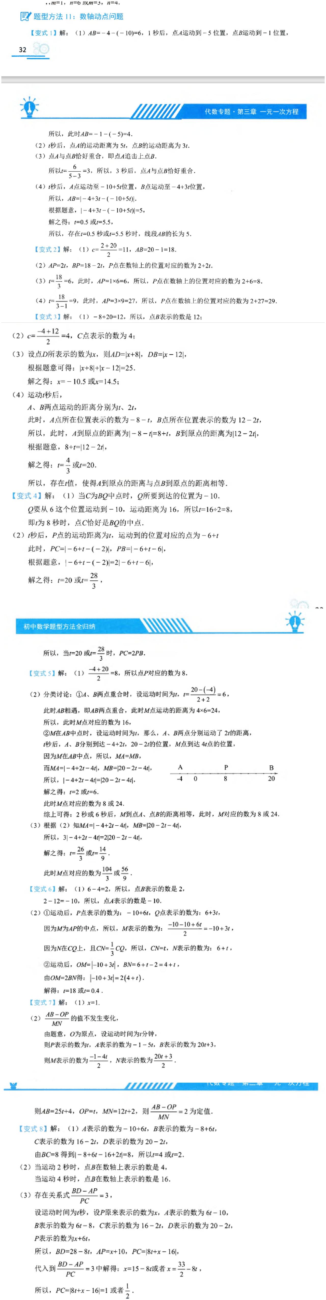 相信我 想秒杀初一数轴上的动点问题 学这几页就够 循序渐进式一步步刷懂 很多书都有讲数轴动点 个人觉得这本最好 书名《初中数学题型方法全归纳》 初中数学题型方法全归纳397种题型方法(带397节视频题库系统)