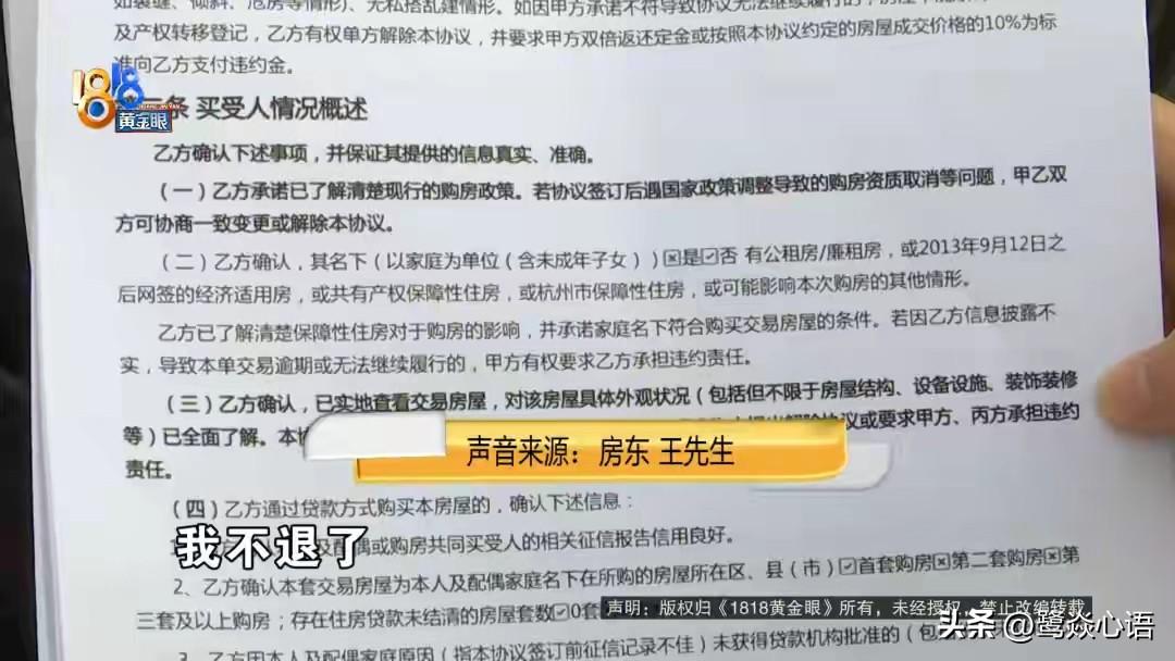 宝盖头的“定”字一签,3万块说没就没!杭州夫妻吵翻天,央广网提醒:这字碰不得! 杭州临平的卞女士最近愁坏了。瞒着丈夫偷偷相中小区一套171万的房,咬牙交了3万定金,本想给丈夫个“惊喜”,结果成了全家人的“惊吓”! 丈夫知道后火冒三丈:“中介明知道我不同意买,还忽悠我媳妇!” 更气人的是,妻子压根没多看几套房比较,脑子一热就签了字。这钱花得冤不冤?丈夫调查发现,小区里108平没院子的才卖157万左右! 卞女士更憋屈。她说看房时中介光夸院子好,窗帘一挡,漏水、发霉、墙裂全藏得严严实实!付完钱才被告知房子“问题严重”。央广网前几天刚强调:宝盖头的“定”字!签了想反悔?钱基本打水漂!言字旁“订”才有商量余地! 房东态度硬得很:“合同白纸黑字,你签字时没提问题,现在拿瑕疵说事?我看是你们夫妻闹离婚才反悔!” 3万块?想都别想退! 链家中介喊冤:“带她看了两次,她自己没发现毛病啊!合同写明了‘主体没漏水’。” 店长两手一摊:想修房子可以谈,想退定金钱?得房东点头! 央广网提醒:买房签单,碰到宝盖头“定”字千万慎签!这一字之差,几万块可能瞬间蒸发! 网友急呼:看房带个手机全程录!合同拿铅笔圈重点!别让黑心中介钻了空子! 这3万块定金到底能不能要回来?夫妻俩中介、房东还在皮拉筋。铁们说说这钱不该退陷阱