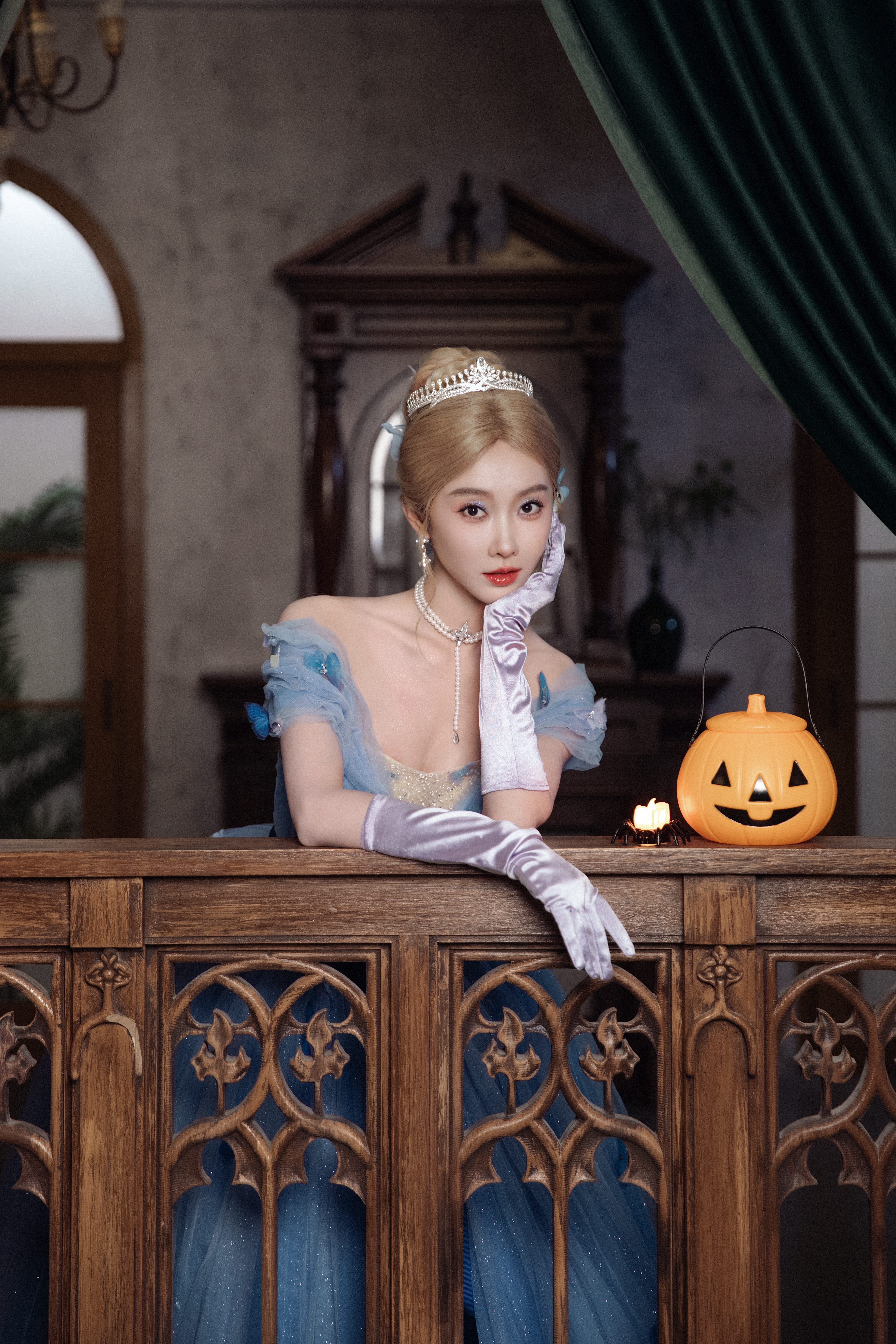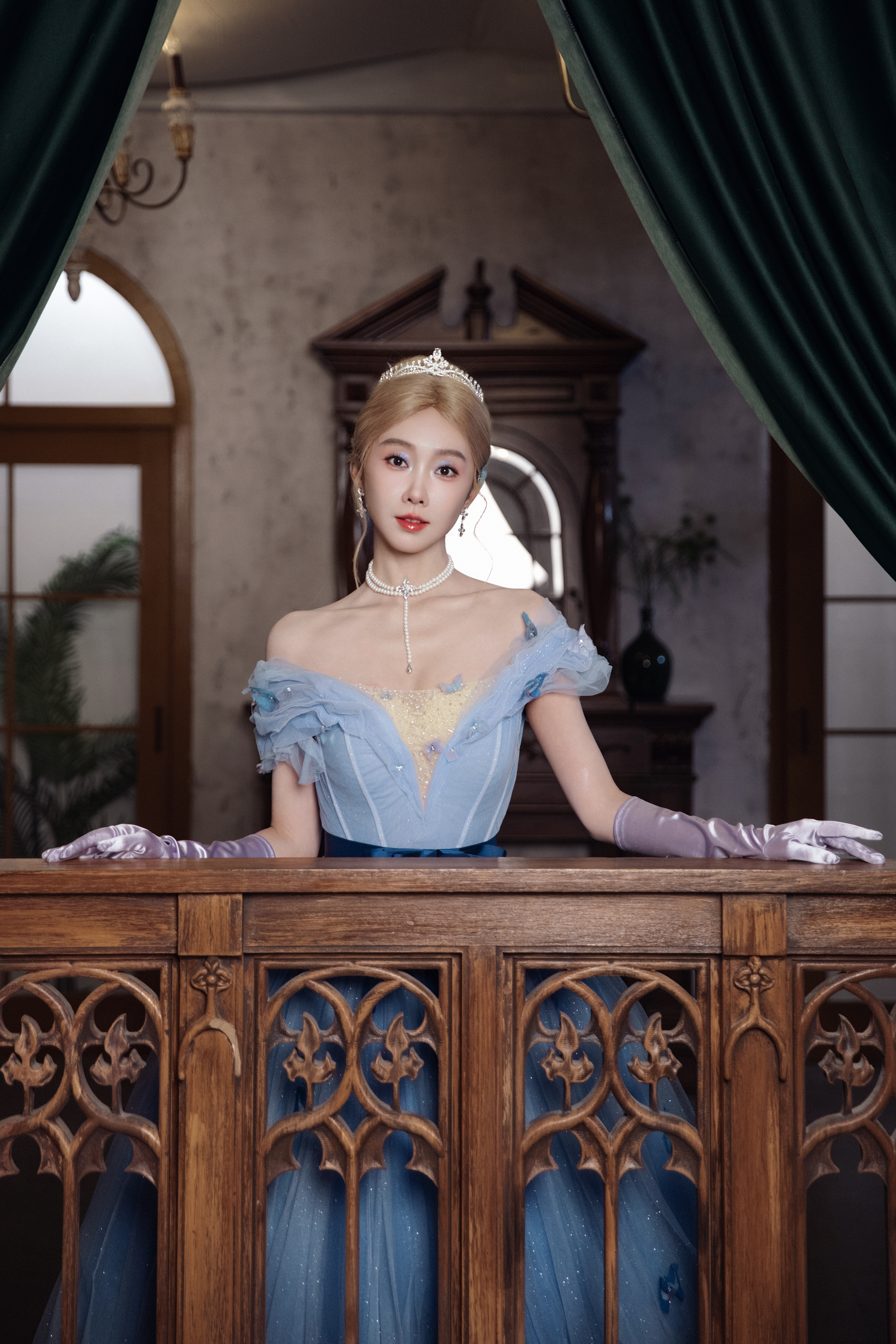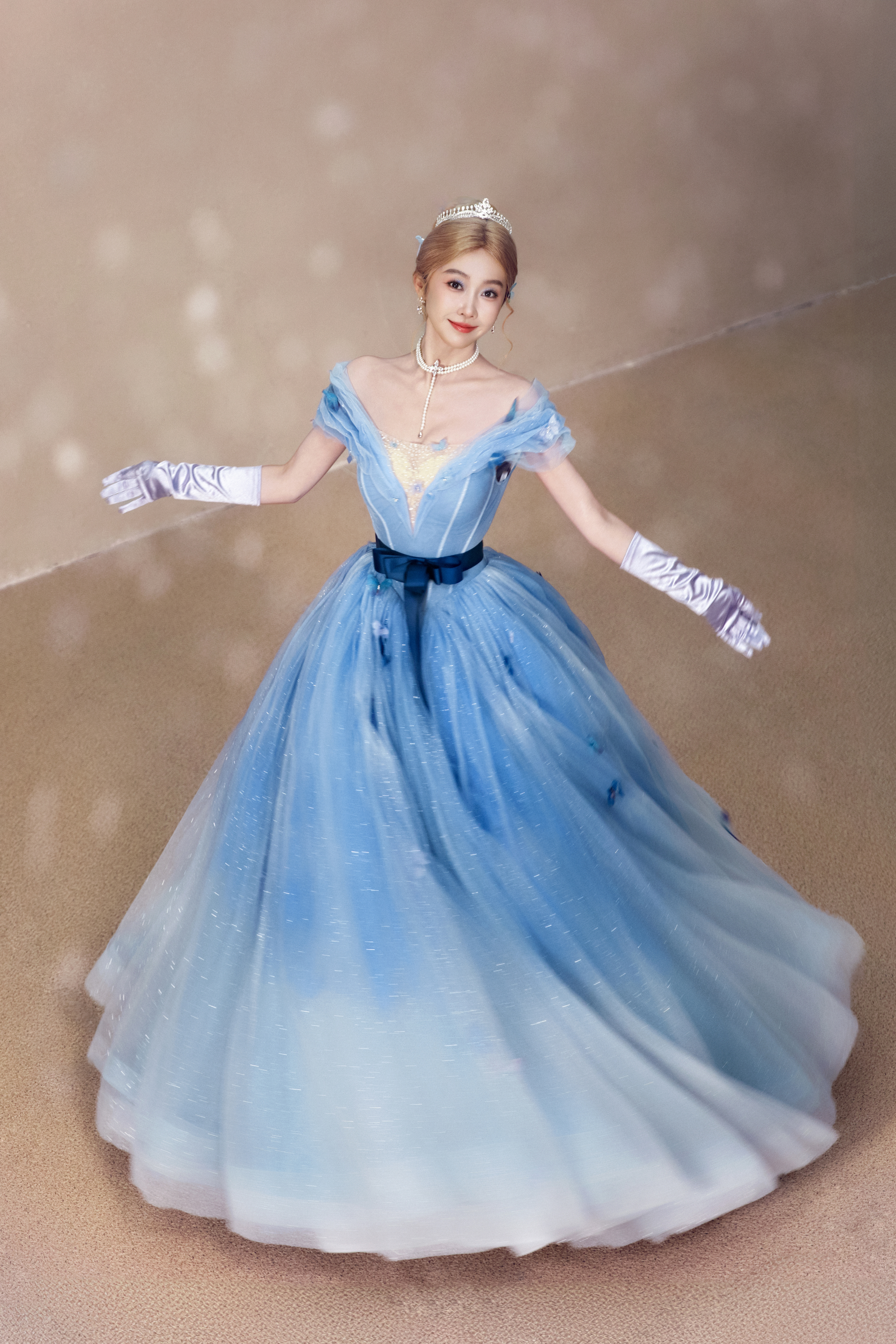 宣璐 从童话里翩然走出的仙履公主,淡蓝纱裙如星河垂落,旋动间漾起梦幻涟漪,王冠与珍珠颈链交辉,每一寸姿态都写满童话的绮丽。