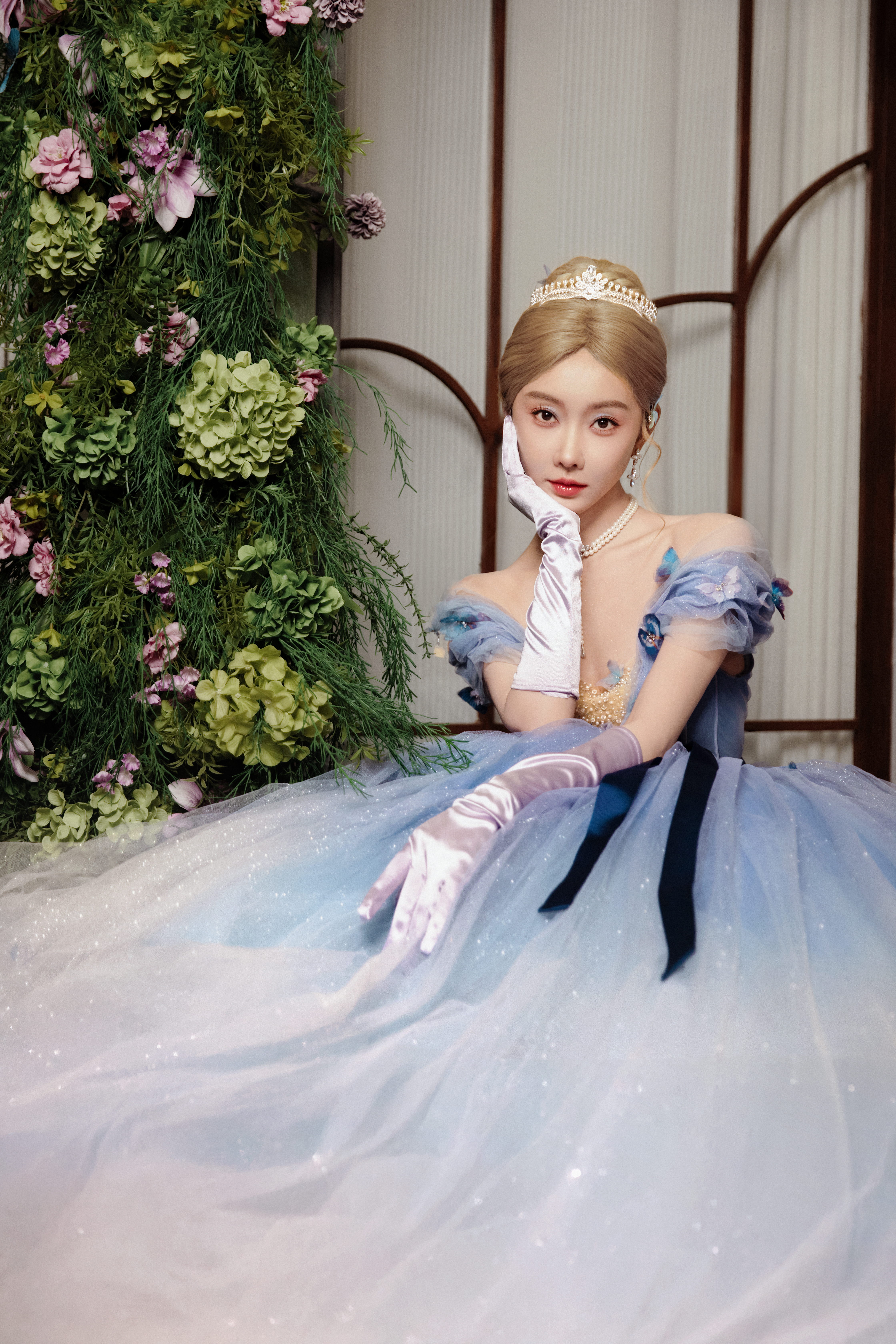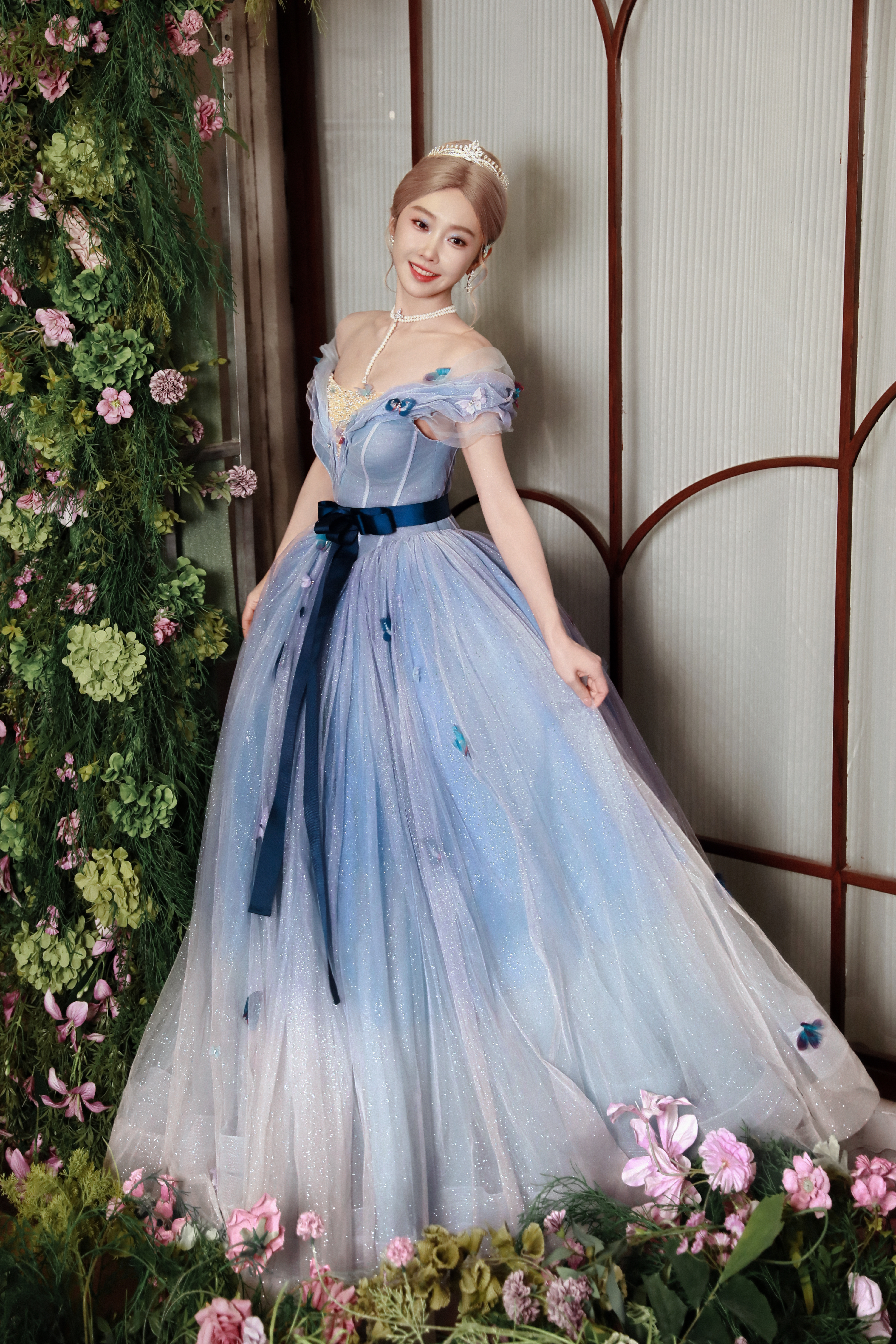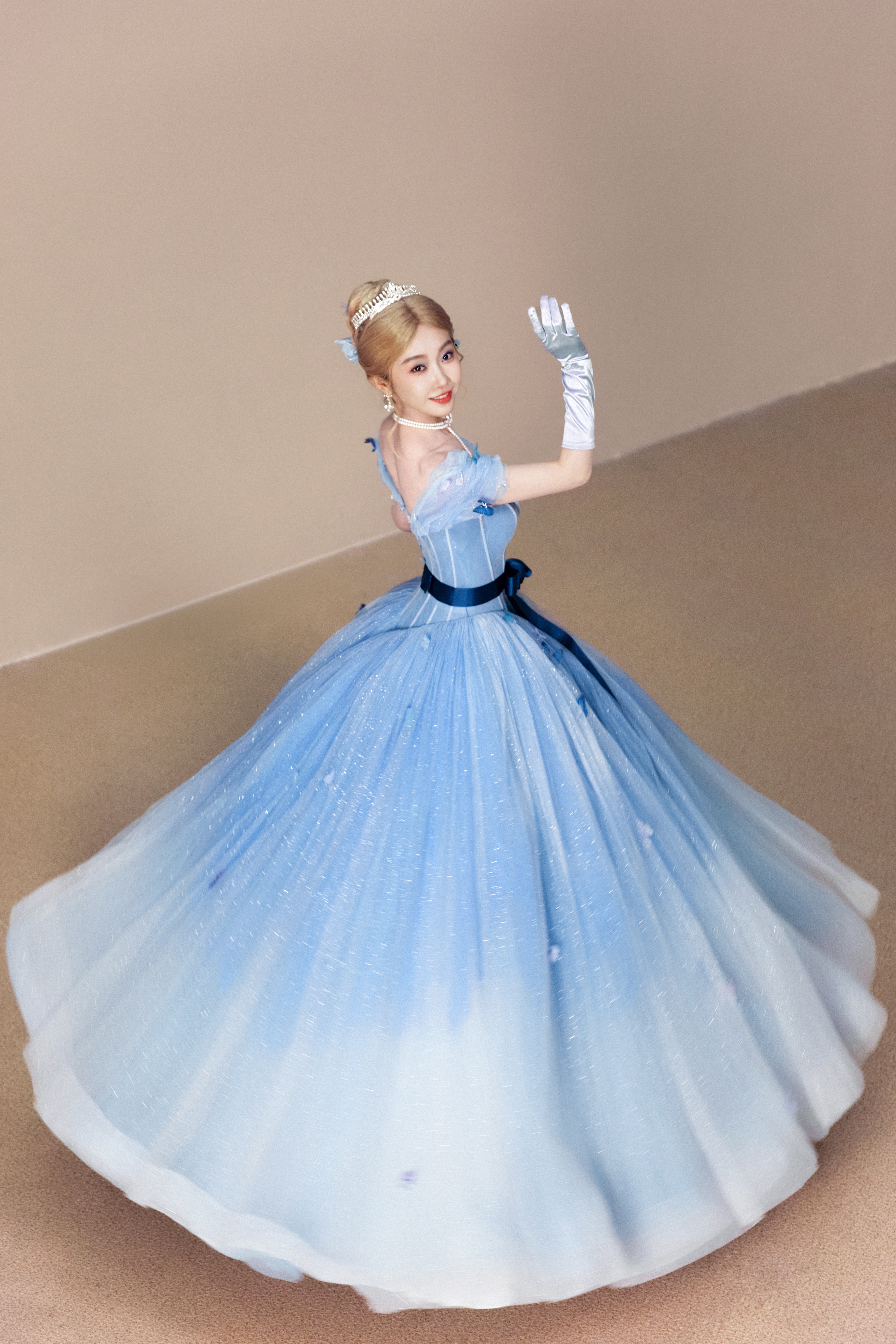 宣璐 从童话里翩然走出的仙履公主,淡蓝纱裙如星河垂落,旋动间漾起梦幻涟漪,王冠与