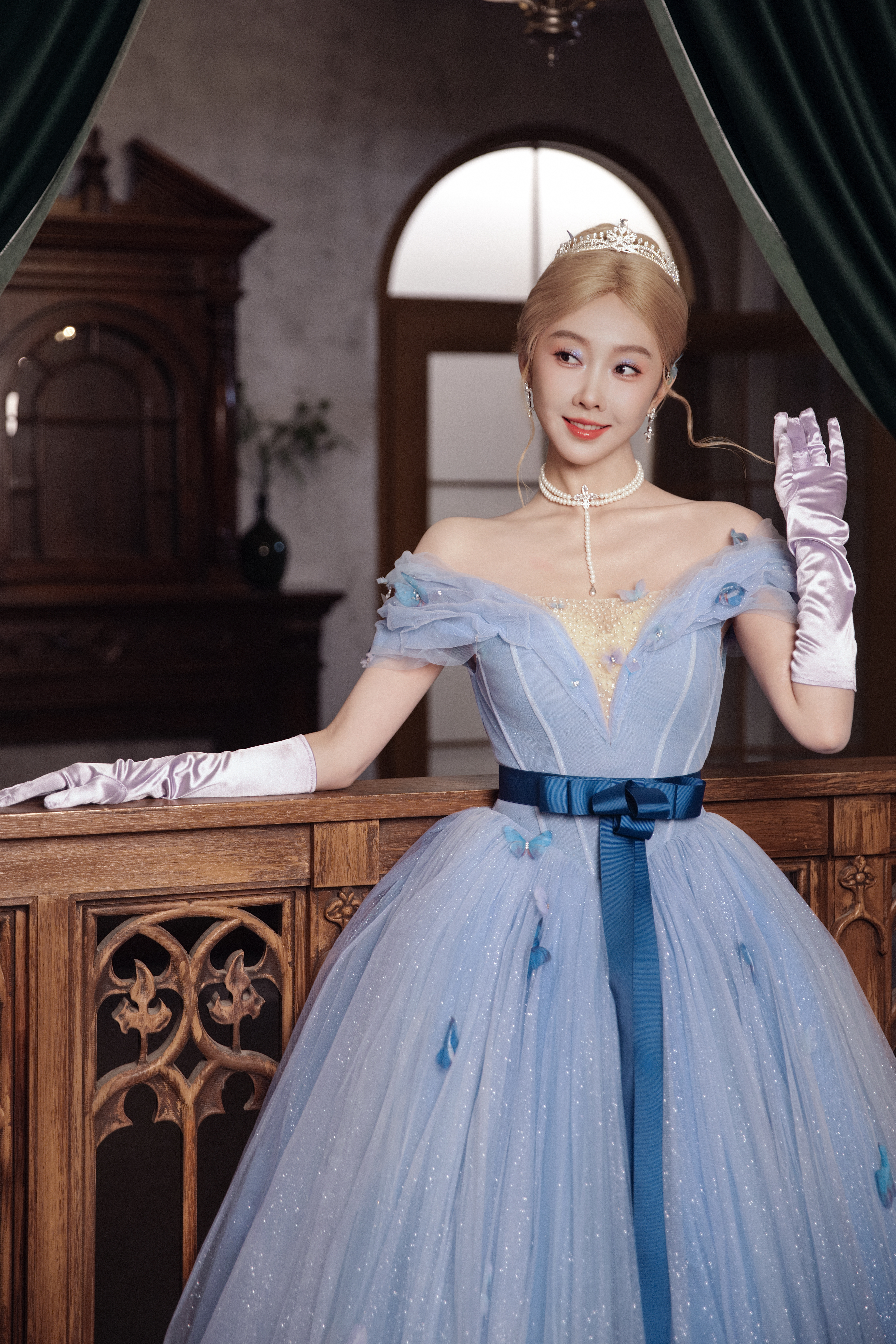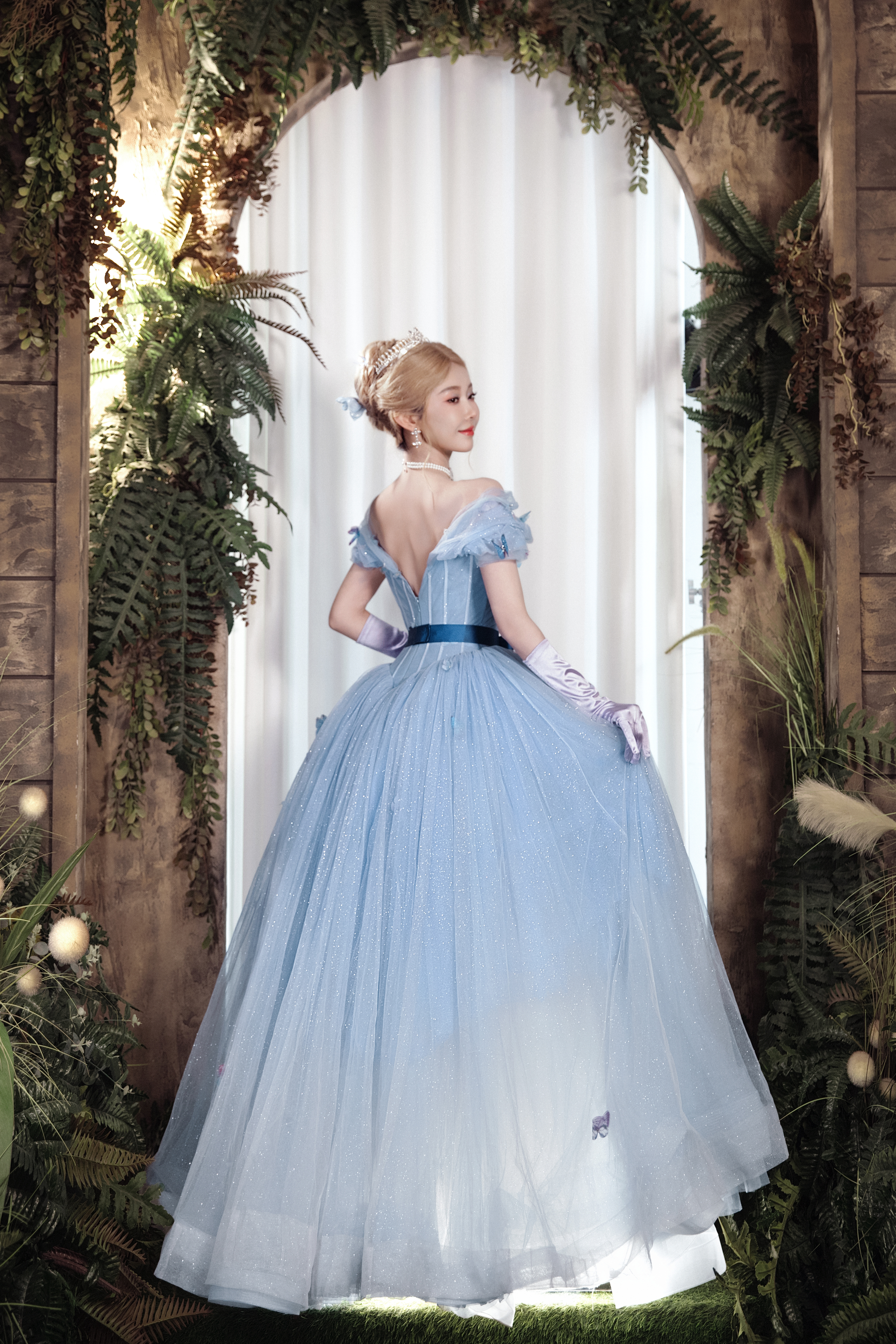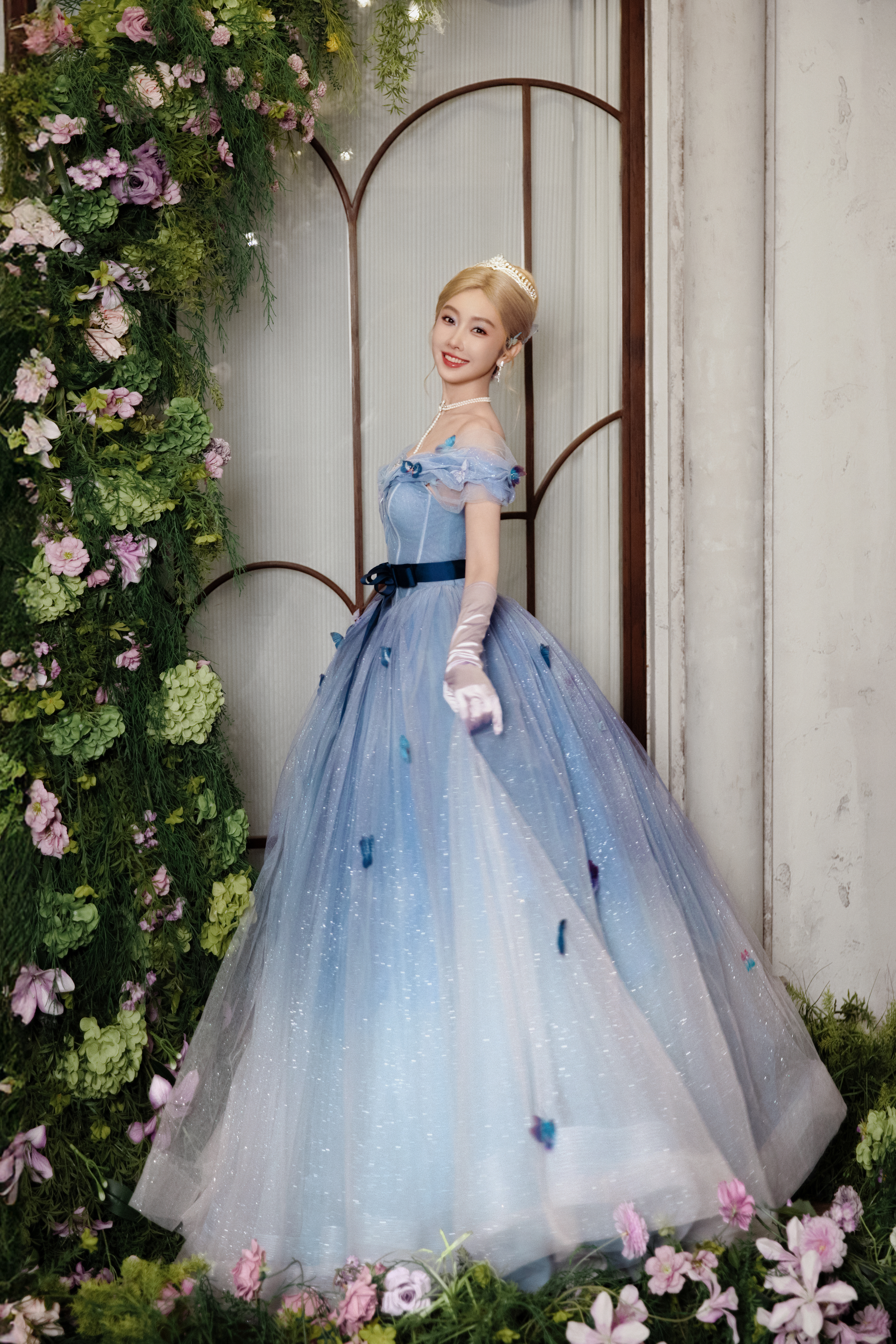 宣璐 从童话里翩然走出的仙履公主,淡蓝纱裙如星河垂落,旋动间漾起梦幻涟漪,王冠与