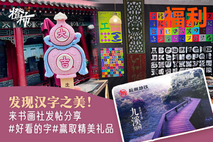 福利:届时将从所有参与者中,选出符合活动打卡要求的橙友,送出新西湖十景地铁纪念票(九溪烟树版旅游一日票),问羽展周边文创好礼。