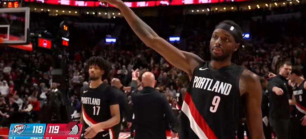 开拓者队真是一架强队的绞肉机,居然把本赛季5连胜的冠军雷霆队给拿下了。比分为121:119,够惊艳! 其实这场比赛,观众对于开拓者没有抱太大的希望,因为他们是平民球队,而雷霆队是上赛季的冠军。但奇迹往往就会发生在不经意间,开拓者赢了快船却输了残阵的湖人。一开始比赛,雷霆队就以雷霆之势,迅雷不及掩耳之力打懵了开拓者,比分一度拉大到20分。关键时刻,斯普利特派上了杜普∽里斯,他的几记3分球追上了比分。格兰特也一往无前冲击篮下阿夫迪亚,下半如同换了一个人巧取豪夺。最大的贡献还有卡马拉攻防一体,他的几记3分球也是十分有力。尽管如此,雷霆队4次从死亡线上拉回赢的可能性,但最终。在无畏无惧的开拓者队员面前,他们输掉了比赛,吞下了苦果。这场比赛的主裁不利于开拓者,几次吹罚严格的哨子。 杨瀚森没有上场,一直在场边作壁上观,不停的鼓掌,加油助威,他也是赢球的一份子。但是这不影响比赛的喜感和精彩。 开拓者 开拓者阵容 开拓者队内动态