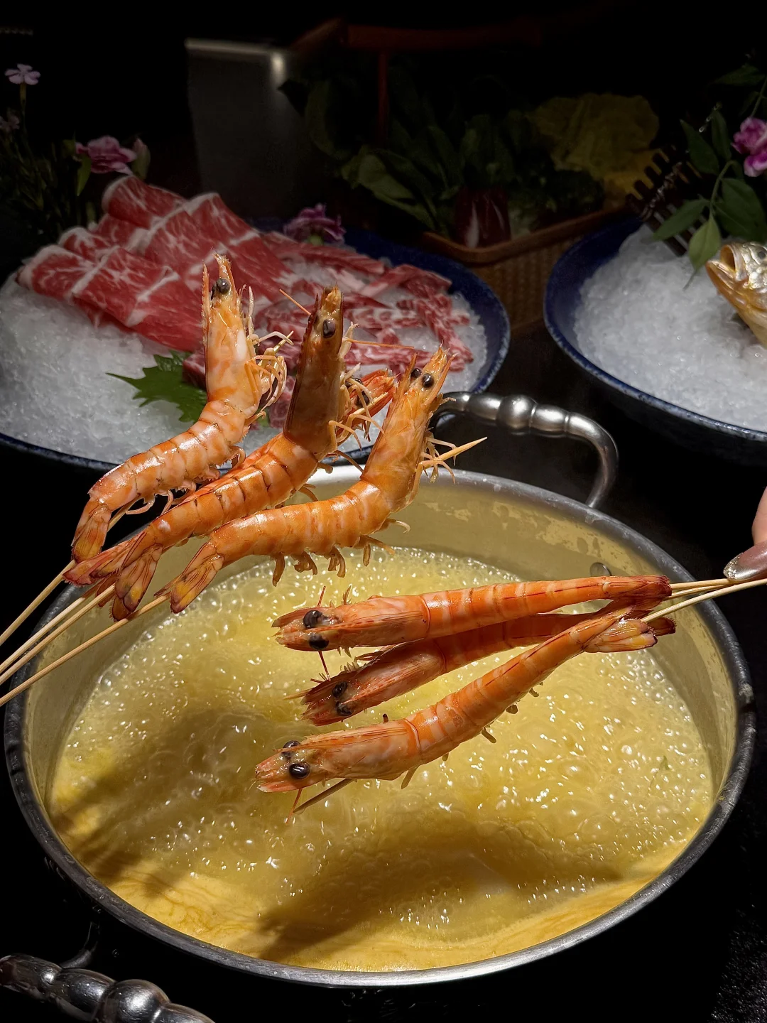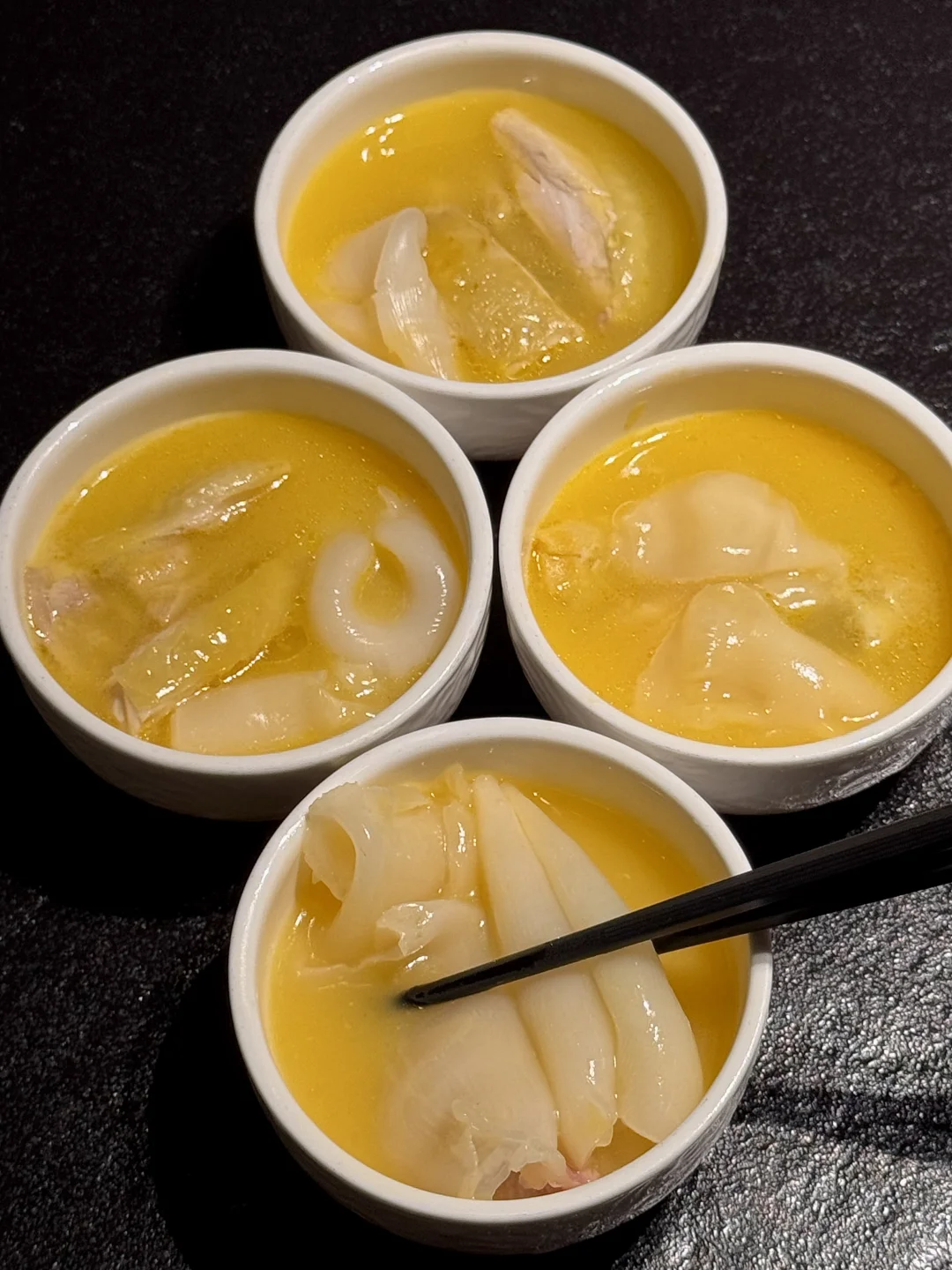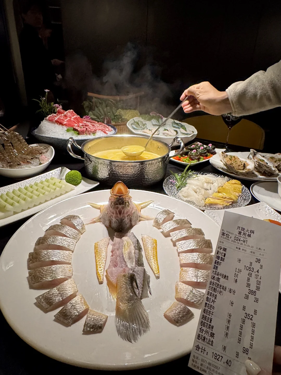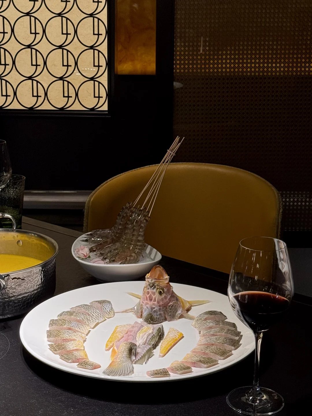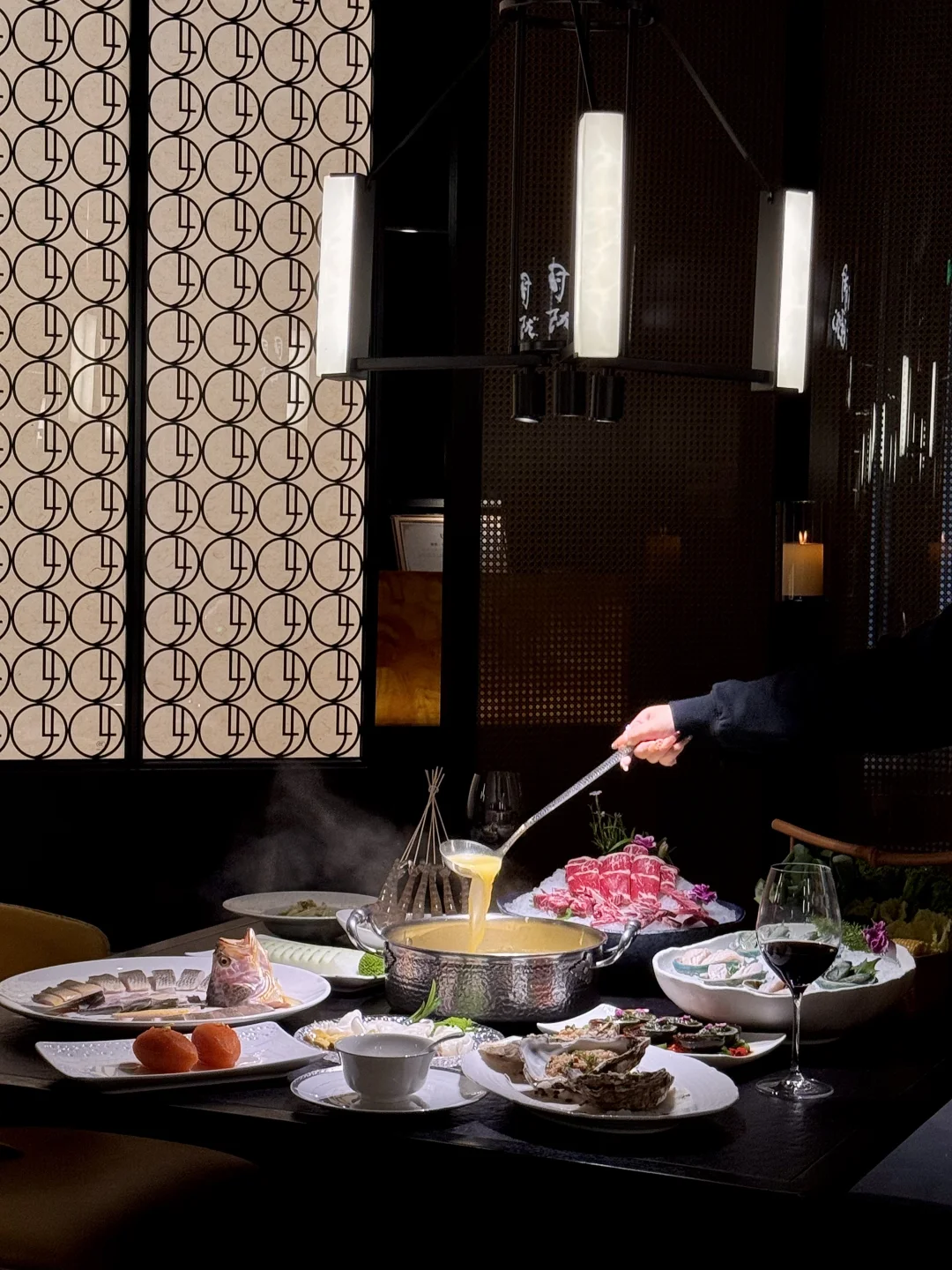 金汤花胶老鸡汤!!鲜掉眉了😭涮前先来一碗汤直接整个人都暖了…杭州降温后吃过最满意一顿! 店里装修大气上档次,从进门到离开全程都有人服务~海鲜新鲜全面,服务也很细致!不管是约会还是宴请吃饭都不会让人失望!