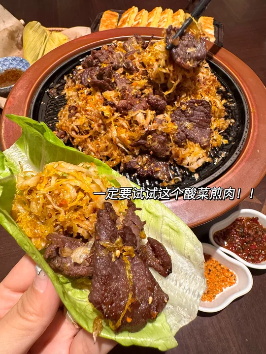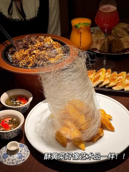 啊啊给所有杭州姐妹安利这个奶皮子冰糖葫芦!吃起来外衣酥脆掉渣,奶味浓郁内陷一口biu汁🤤唯一的缺点就是不能打包带走。。 · 不愧是非遗菜品牌!菜品和环境全都精致迷人~ 一定要试试他们家豆角烀饼!开盖浓郁的肉香扑面而来😭排骨软烂配上油豆角…巨入味! 还有他家老式锅包肉,大块酸甜谁吃谁爱…盲点的酥黄菜、雪绵豆沙都好好吃! 喜欢东北菜的姐妹真心可以去试试看!叫:奉天小馆📍)