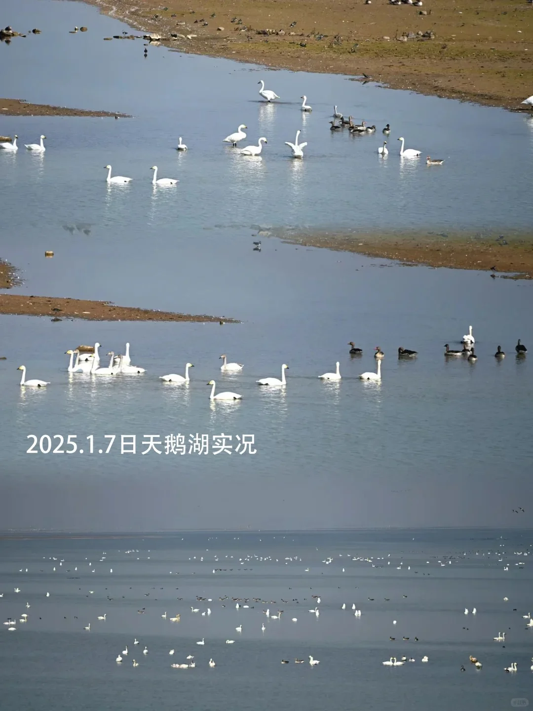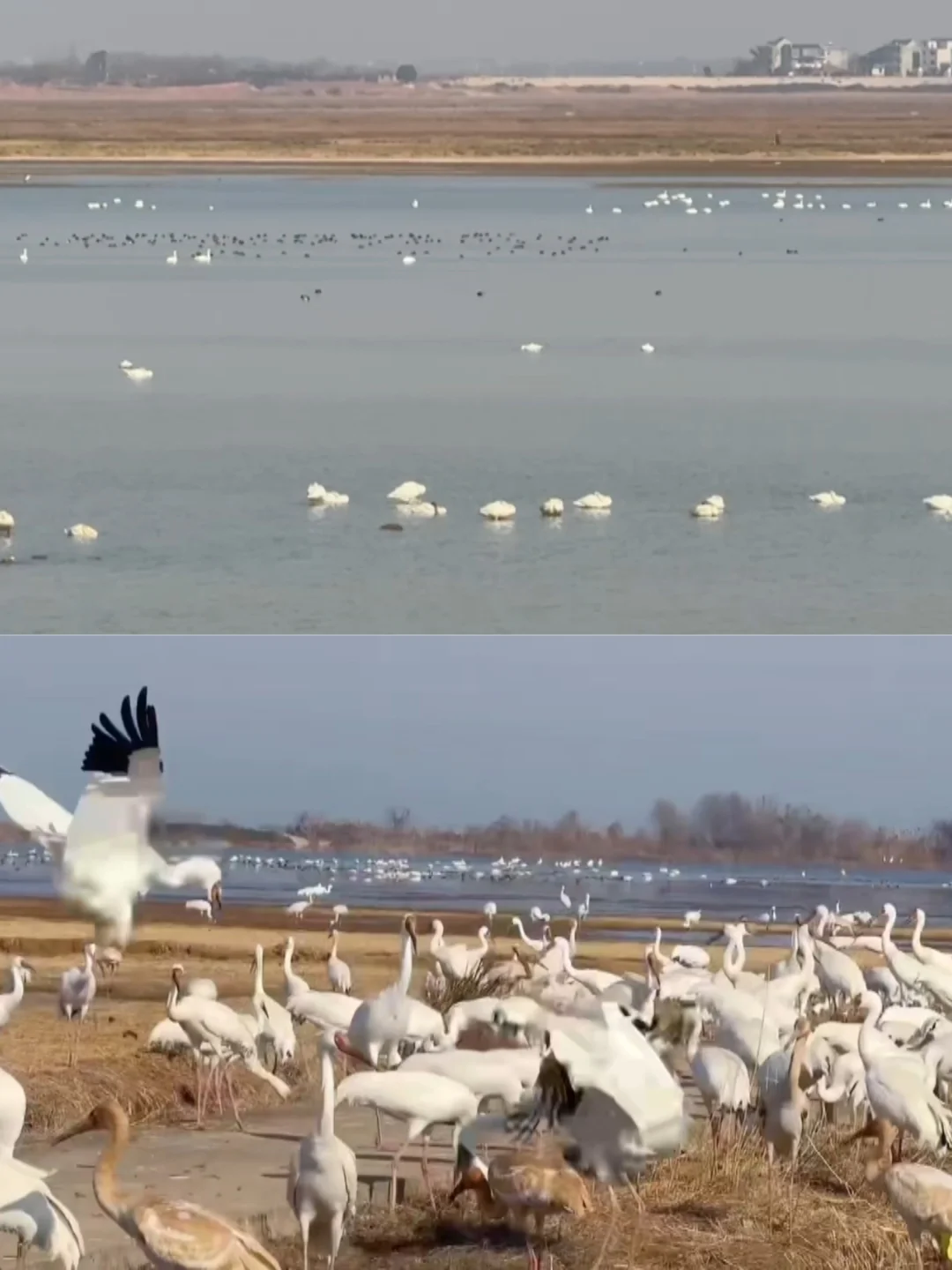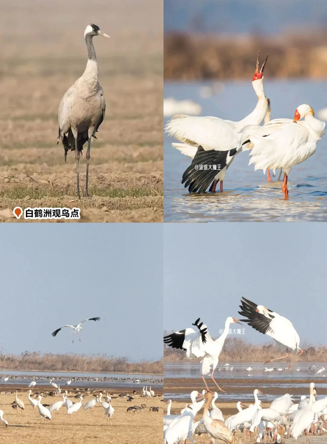 推荐:沿着大坝走,成片的天鹅在湖里嬉戏玩耍,近距离观察小天鹅、列队休整的鸬鹚军团、低头觅食的灰鹤家族;上千只白鹤集体觅食,运气好还能见到白头鹤、白枕鹤;