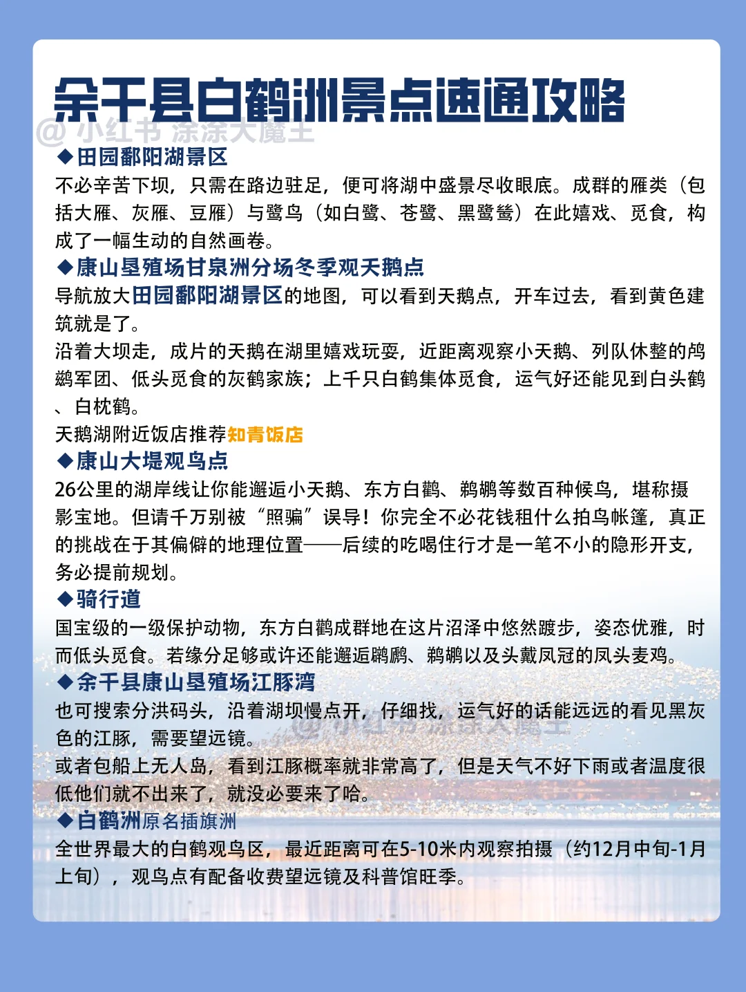 推荐:全世界最大的白鹤观鸟区,最近距离可在5-10米内观察拍摄,观鸟点有配备收费望远镜及科普馆(最新统计,江西白鹤数量达5710只,占全国白鹤数量的82%!其中白鹤洲2天连续调查平均值为4150只