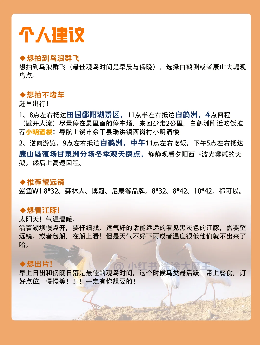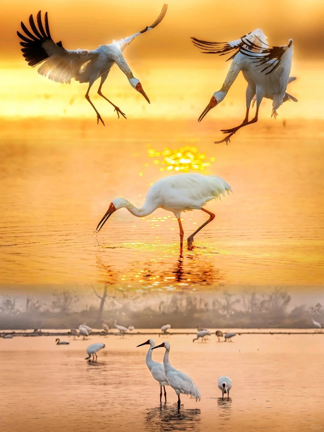 每年11月至次年3月,全球来鄱阳湖越冬候鸟种类极多数量巨大, 可以看到白鹤、白枕鹤、鸿雁、灰雁、东方白鹳、白琵鹭等数十种水鸟,盲盒还有白尾鹞、黑翅鸢、白琵鹭、小天鹅、乌雕等稀有单品和奇怪的鸻鹬。数量多达70万只。