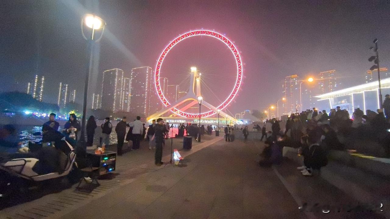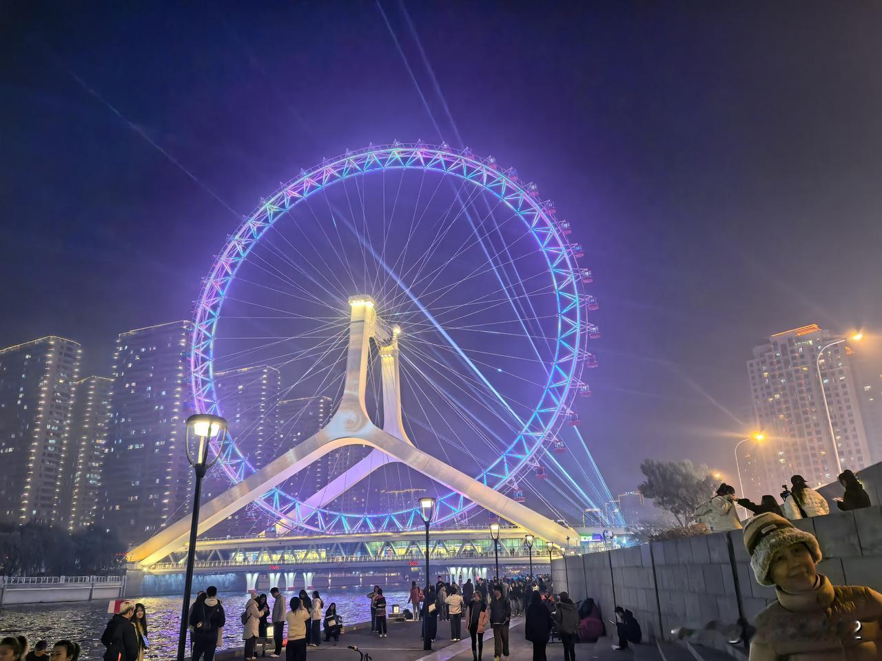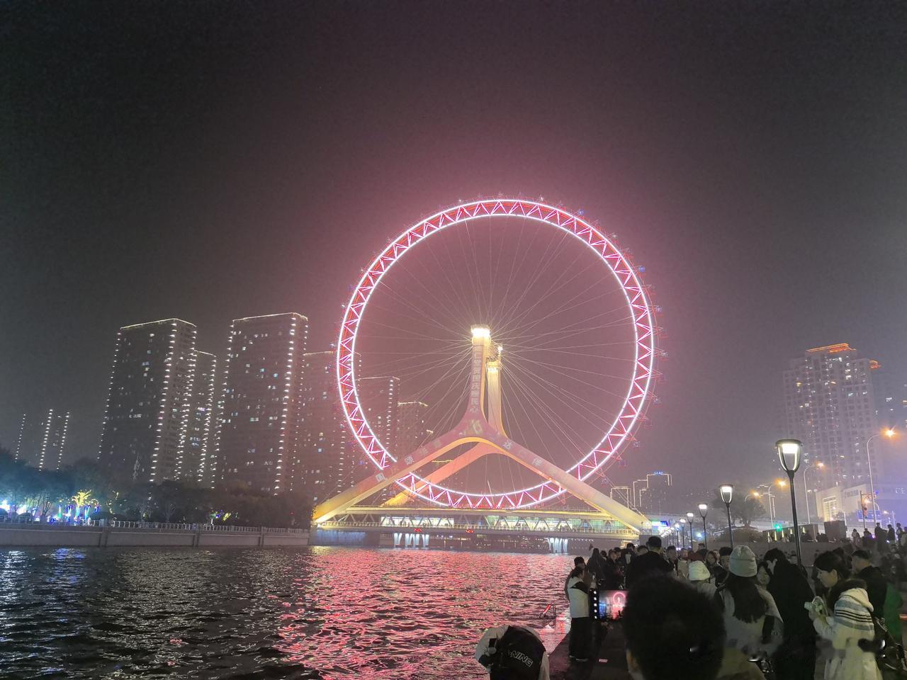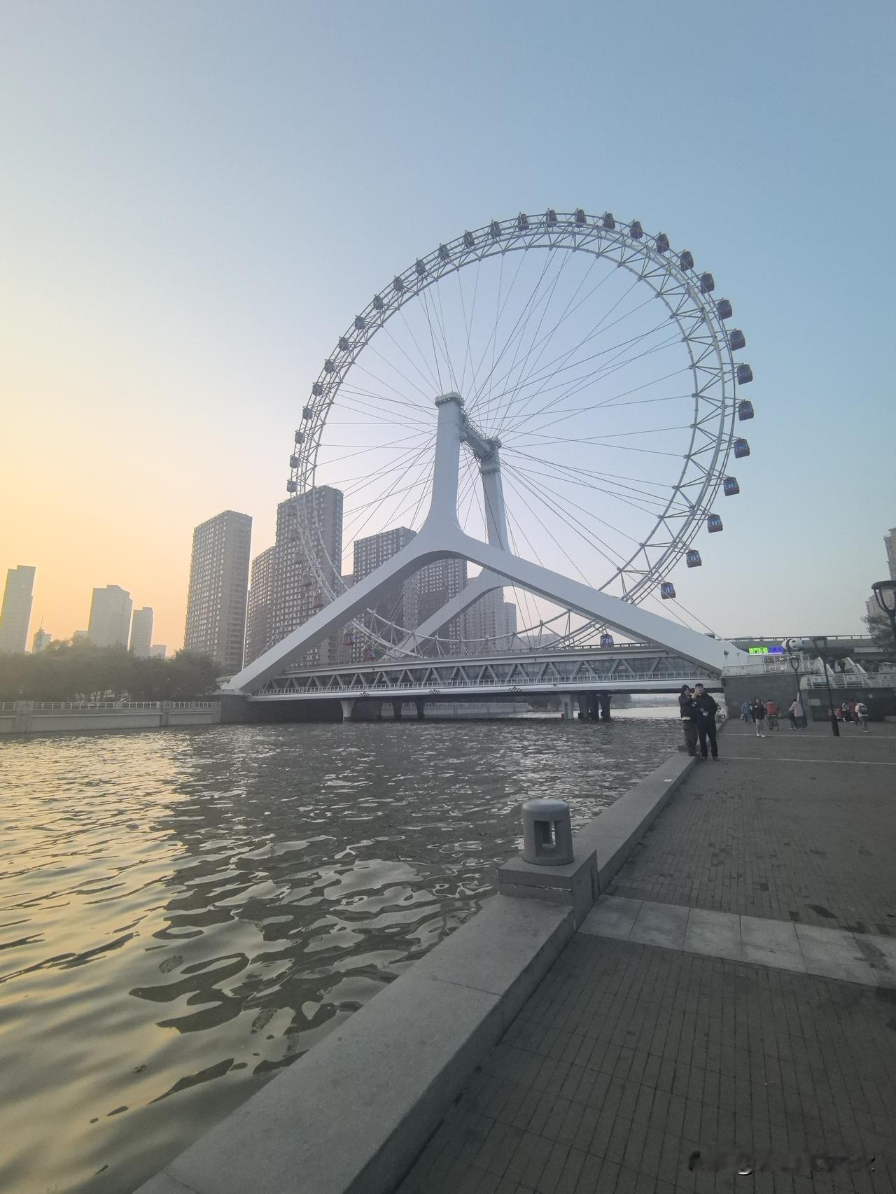 青岛耄耋老太自由行一>来天津旅游。最喜欢从胜利桥漫步到永乐桥,一边走一边欣赏海河旖旎的风光,目的地是建在永乐桥上的天津之眼摩天轮。 可惜前两天,天津的天气不太给力,不是下雨,就是阴天,我去了两次摩天轮,拍摄效果不是太佳。 但是,我已经很满足了! 第一次是天津站的胜利桥步行去的,经过了六座桥,走了1万多步,可是我一点也没感觉到累。 第二次是打车去的,然后,从永乐桥买了游船的票,老人8折优惠64元。 我乘着游船在海河上看摩天轮,别有一番风光在心头。 现在我把这两天随手拍的天津之眼一摩天轮的图片分享给您,希望您能喜欢。