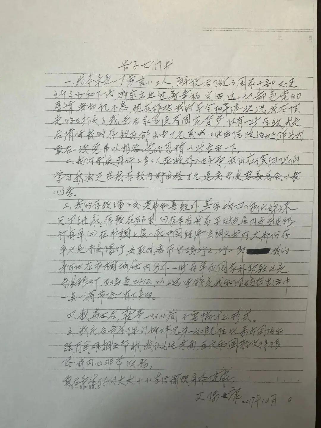 近日报道,宁波,百岁老人去世后,子女们在家中发现了一封8年前写下的“遗书”,里面特别交代了两件重要的事,让人泪目! “爸留下一封信,八年前就写好了。”当大姐在父亲书房找到一个泛黄的信封时,聚在客厅里的陈家几兄妹,谁也没想到,这是父亲给他们上的最后一课。 2025年4月,102岁的陈世康老人安详地走了。儿女们一边忍着难过,一边收拾他的东西,这才发现了这封他在2017年写下的《告子女们书》。 信不长,但每个字都很有分量,这位宁波市江北区人民法院的第一任院长,在信里郑重地交代了两件事:第一,从他留下的钱里拿出1万元,替他交给党组织,作为最后一次党费;第二,再拿出10万元,捐给宁波市慈善总会。 “我们几个看着那封信,半天都说不出话,”陈老的小女儿后来回忆道,“只觉得眼泪不停地往下流。” 1924年,陈世康生在浙江一个普通农民家里。那时正值战乱,他才十几岁,就为了糊口跑到码头上当搬运工,肩膀被沉重的麻袋磨破了一层又一层的皮。 “我爸很少提他年轻时受的罪,但他总说,1949年是他一辈子的转折点。”陈老的大儿子记得特别清楚,“新中国成立了,他这个‘苦力小工’才有机会上学认字,后来还成了国家的干部。” 正是这段吃糠咽菜的经历,让陈世康对党和国家有着最深、最真的感情。他从码头走进了法庭,人生完全变了样,但那颗为老百姓做事的心,从来没变过。 在法院工作时,陈世康有个大家都知道的习惯,身上总带着两个小本子。一个记案子的事,另一个则写满了来找他办事的人有什么难处。他觉得,当法官的,不能只照着法律条文判案,更得把大家心里的疙瘩给解开。 “记得有个案子,是老父亲告三个儿子不养老。”一位以前的老同事讲起,“陈院长没急着判,反而连着三个周末,自己蹬着自行车跑到村里,把那一家人叫到老房子里慢慢聊。最后,几个儿子都觉得脸红,主动答应好好养父亲。他说过:‘法律本身是没温度的,但法官的人心,得是热的。’” 在陈老看来,他本来就是个受苦的小工人,解放后当了国家干部,这一切都是党给他的恩情,所以,他希望子女们千万不能忘记。这些字写得不如年轻时有力气了,但每一笔都带着岁月的沉淀。 从字里行间,可以想象出老人当年在码头上干活、抬头看天的场景,第一次穿上法官制服时的心情,以及他举起右手宣誓入党的那一天。 他特别强调的两件事,一个是他对信仰的最终交代;另一个,则是他对这片生养他的土地最真诚的回报。他说:“咱们宁波有那么多好心人做好事,我们得向他们看齐。” 陈老的孙子记得,找到那封信后,全家人坐在客厅里,安静了很久:“那一刻,我们才真的懂了,什么叫家风。爷爷用他这一辈子是怎么做的,最后又用了这封信,教会了我们该怎么做人。” 更让儿女们感动的是,陈老在信里还专门嘱咐他们“兄弟姐妹一定要团结,要和睦”,他的后事越简单越好。他把自己的身后事安排得明明白白,却一点没考虑给自己办个多么风光的仪式。 陈老的大女儿还说,父亲一辈子清清白白,这11万块钱,差不多是他所有的积蓄了。但他们几个孩子一点没犹豫,马上就去联系了党组织和慈善机构。因为,这是他最后的心愿,作为子女,一定得帮他办好。 在生命的最后,这位老法官用最朴实的方式,完成了他最终的“判决”,这个判决,关乎信仰,关乎付出,也关乎一个共产党员最初的真心。 信源: 都市快报橙柿互动2025-10-31 ——深藏八年,一位102岁老人的特殊家书 文|一阳 编辑|史叔