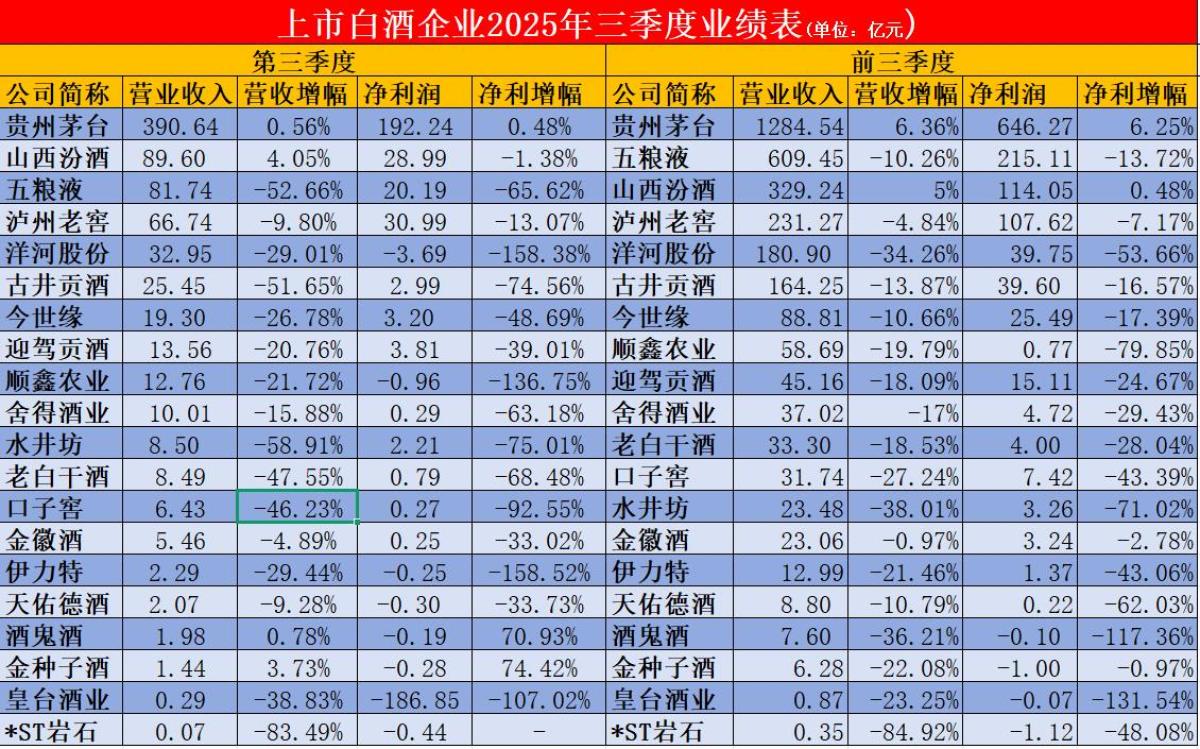 2025年前三季度,白酒行业的分化态势比以往任何时候都更明显,从头部到尾部的业绩落差构成了行业的“分水岭”。