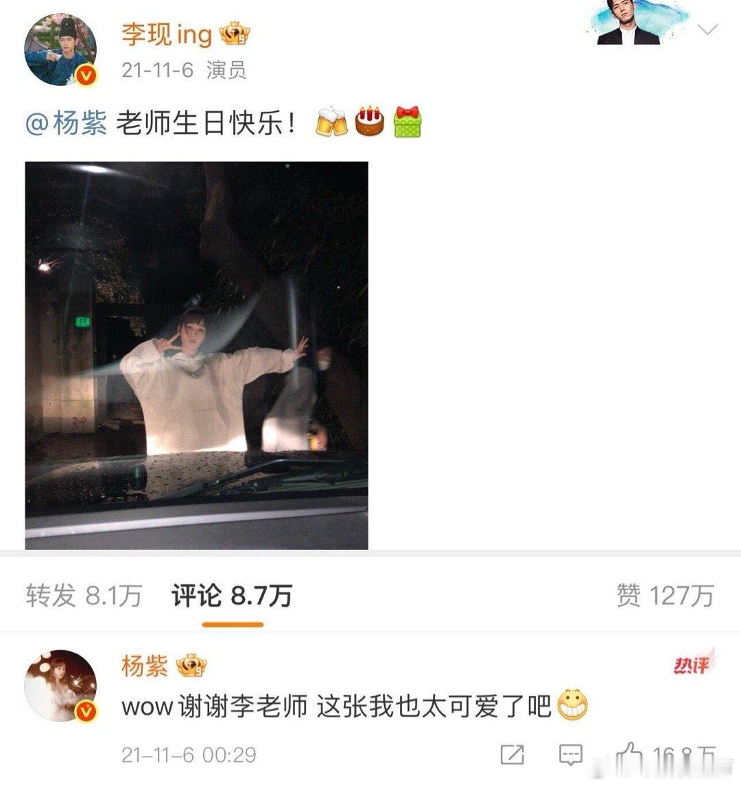 老同学一年又一年,李现发微博给杨紫庆生了[拜托]