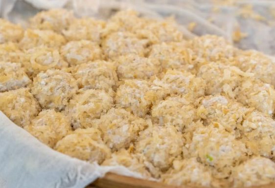 宴球,乾隆巡幸到长安镇时,尝了农家做的“鱼圆裹肉皮”,龙颜大悦,当即题诗赐名“宴球”,赋予“团圆美满”的寓意。如今的宴球以鲜鱼为馅,外裹肉皮,蒸制后鲜嫩多汁,仍是海宁人宴席上的重要菜品。