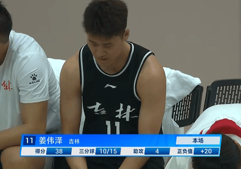 吉林球员姜伟泽三节投篮17中12,三分15中10砍下38分3篮板4助攻。