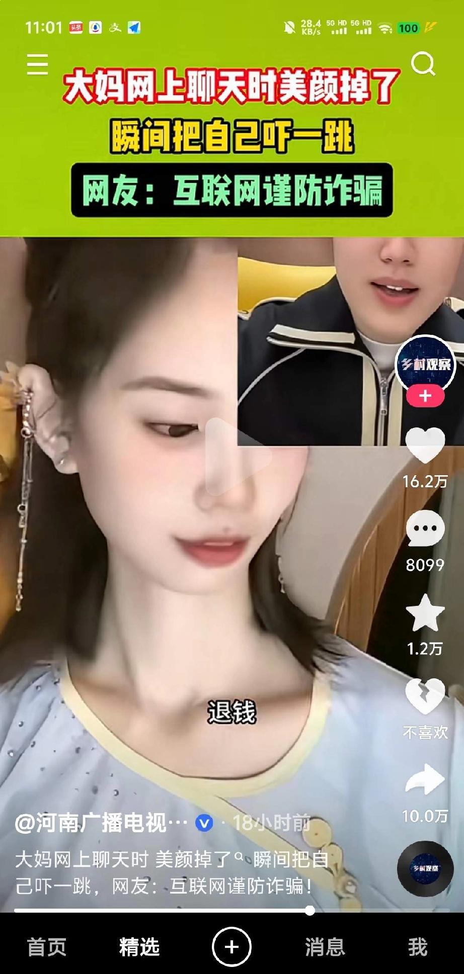 美颜掉了的女主播。 大家总觉得前面那个是真实,后面那个美女是美颜骗人的,现实就是美女是真的,前面那个老女人才是特效。