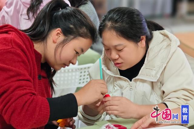 教师们分组围坐,动手尝试。大家时而专注地揉捏面团,时而参照示范作品,时而相互交流技巧。现场充满了创作的热情与欢声笑语。从最初对力度的小心翼翼,到后来的得心应手,老师们的指尖渐渐灵活起来。不一会儿,一条条形态各异、色彩斑斓的小金鱼跃然手上。