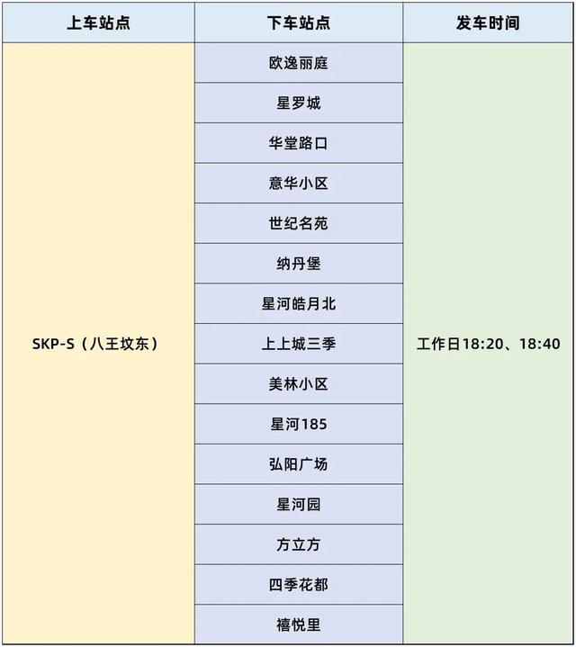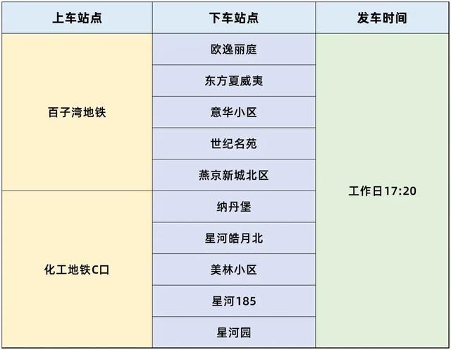 出京线路。发车时间为工作日18:20、18:40。设置上车站点1个,下车站点15个。站点如下: