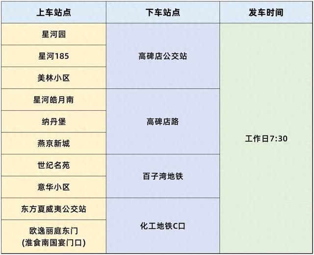 进京线路。发车时间为工作日7:30。设置上车站点10个,下车站点4个。站点如下:
