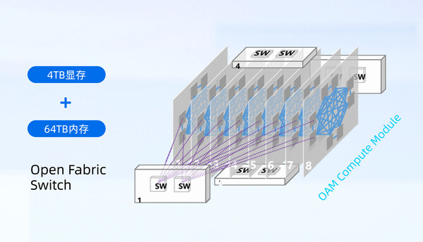 元脑SD200采用了独创的多主机3DMesh系统架构,实现单机64路本土AI芯片高密度算力扩展,原生支持开放加速模组OAM,兼容多元AI芯片。同时,元脑SD200通过远端GPU虚拟映射技术创新,突破跨主机域统一编址难题,实现显存统一地址空间扩增8倍,单机可以提供最大4TB显存和64TB内存,为万亿参数、超长序列大模型提供充足键值缓存空间。基于创新的系统架构设计,元脑SD200单机即可承载4万亿单体模型,或者同时部署由多个万亿参数模型构成的智能体,多模协作执行复杂任务。