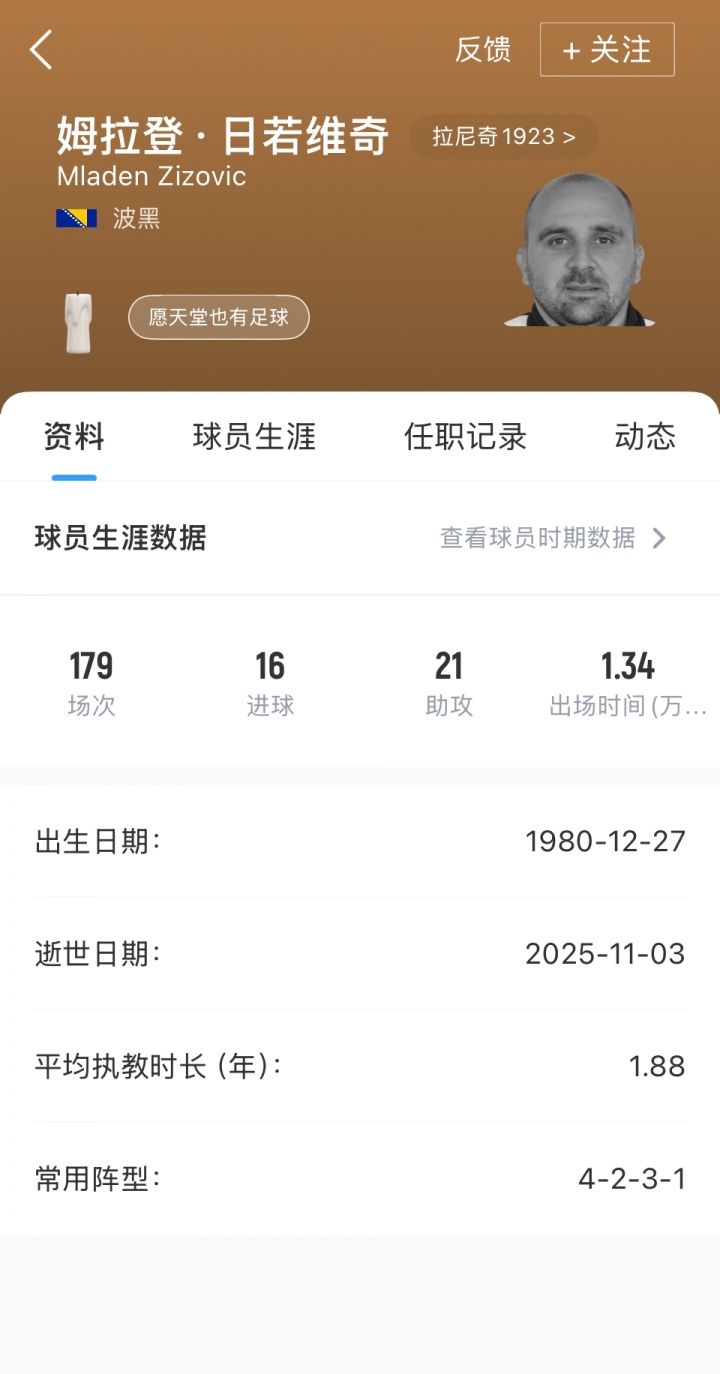 直播吧11月06日讯当地时间11月3日,塞尔维亚超级联赛的球队拉尼奇1923主教练日若维奇,在比赛第22分钟因突发心脏病倒在替补席,随后在送医的路上去世,年仅44岁。据塞尔维亚媒体sportske报道,拉尼奇1923将支付日若维奇剩余薪水的2倍,用于补偿日若维奇的家庭。