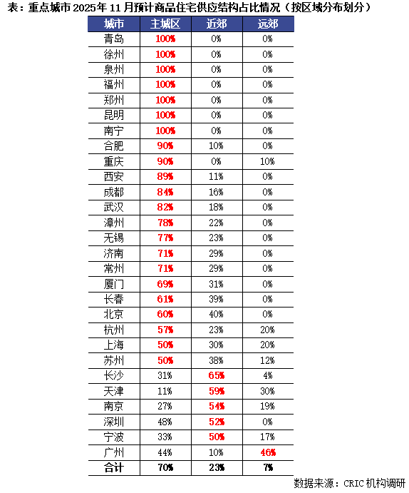 结构:近8成城市以主城为供应主力沪杭蓉汉等16城改善占比主导
