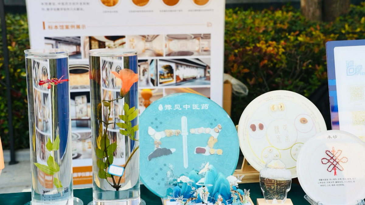 郑州金宏达医学仪器设备贸易有限公司在市集中展示了制作精良的植物标本及中医药文创产品,副总经理贺江茹表示,随着时代的发展,中医药的数字化产品也在不断升级,“如今中医药更加深入人们的生活,标本的生产制作也加入了二维码的设计,通过扫码就能够了解到相关药材的详细介绍、功效、来源等内容。”
