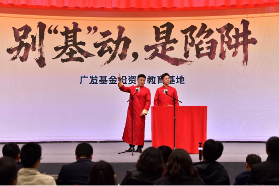 防范和打击非法金融活动是资管机构履行社会责任的具体体现。本届论坛上,广发基金受邀登台进行投教节目展演。公司投教团队把防非宣传融入传统曲艺,以一段生动的相声《别“基”动,是陷阱》,揭露“内部跟投群”“内幕消息”“高端策略”等不法分子惯用伎俩,戳穿假冒基金从业人员、非法集资、庞氏骗局等各类诈骗手段,启发人们在笑声中思考投资路上的“坑”与“道”。