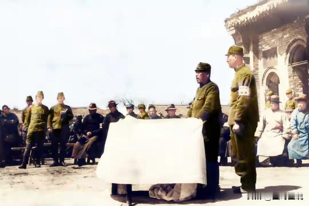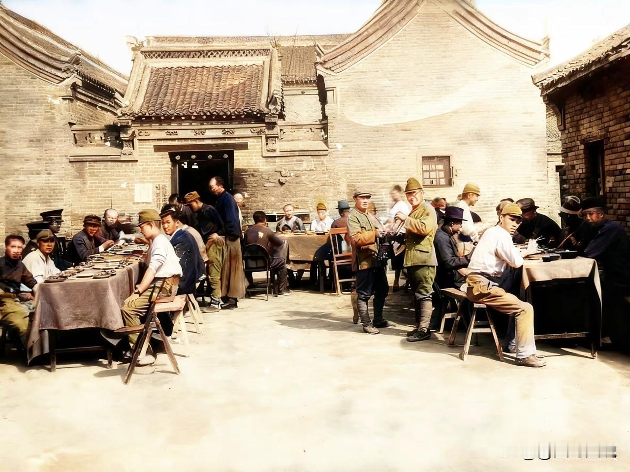 日军占领封丘后,汉奸们迅速展示出他们的丑恶嘴脸和群魔乱舞,他们为了迎合日本主子,组建了汉奸组织“新民会”,积极为日本人摇旗呐喊,从而达到 “以华治华”“险恶目的。 图一为在一群汉奸们的簇拥下,一名日本军官正在对“新民会”会员讲话。 图二为开完会后,参加宴会的鬼子和汉奸。
