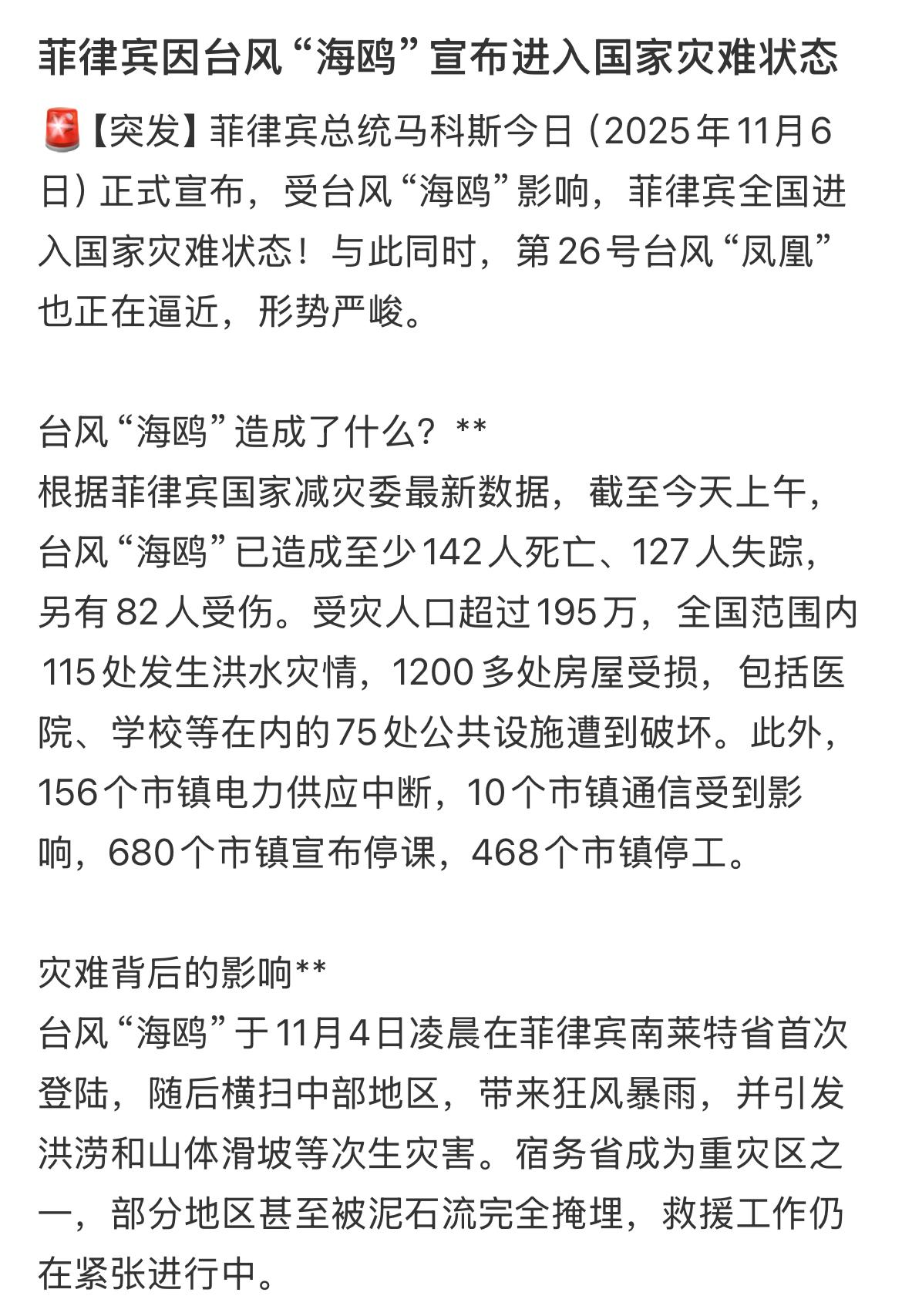菲律宾全国进入灾难状态, 网友们的评论却出奇一致——同情归同情, 但真没必要再掏心掏肺援助了! 想想这些年,中国对菲律宾的援助从没含糊过,台风、地震每次都送上千万级物资和现金,和平方舟还去免费做手术,可换来的是什么? 是一次次非法侵闯黄岩岛领海,是故意冲撞中国海警船的挑衅。 这哪是互帮互助,分明是“农夫与蛇”的现实版。 菲律宾一边靠美国撑腰搞军事演习,一边拿中国的援助当理所当然,真当咱们的钱是大风刮来的? 不如把这些钱用在民生改善、边防建设上。 美国既然要给菲律宾做“靠山”,现在人家遭了灾,正好该美国兑现承诺。 你觉得中国这次该出手援助,还是尊重网友的心声?来评论区说说你的看法!